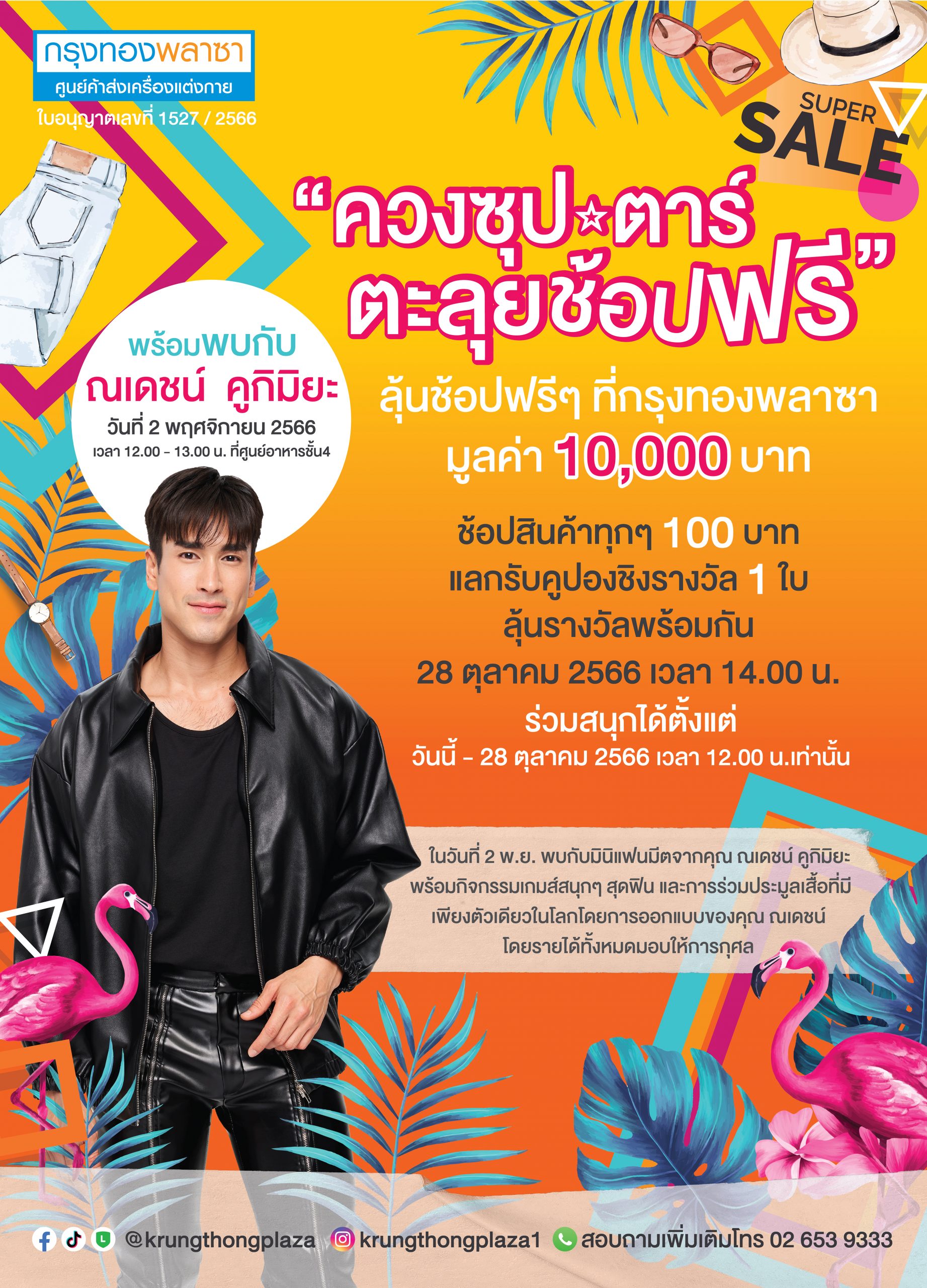 กรุงทองพลาซา ศูนย์ค้าส่งเครื่องแต่งกายสาวพลัสไซซ์ที่ใหญ่ที่สุดในประเทศ สร้างปรากฏการณ์ช้อปปิ้ง จัดบิ๊กแคมเปญสุดพิเศษ “ควงซุปตาร์ ตะลุยช้อปฟรี” เอาใจขาช้อป เพื่อแทนคำขอบคุณและคืนกำไรให้ลูกค้าที่สนับสนุนด้วยดีตลอดมา โดยนำซุปตาร์สุดฮอต “ณเดชน์ คูกิมิยะ” มาร่วมสร้างประสบการณ์สุดประทับใจแบบเอ็กซ์คลูซีฟเฉพาะลูกค้ากรุงทองพลาซาเท่านั้น