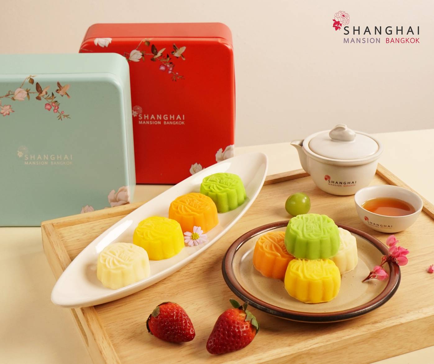 โรงแรม เซี่ยงไฮ้ แมนชั่น กรุงเทพ (Shanghai Mansion Bangkok Hotel) ชวนร่วมสืบสานประเพณี เฉลิมฉลองเทศกาลไห้วพระจันทร์ สัมผัสศิลปะแห่งการลิ้มลองรสชาติของขนมไหว้พระจันทร์แป้งสดเจ้าแรกในประเทศไทย ตามแบบฉบับความ เหนียวนุ่ม ไส้ชุ่มฉ่ำ รสชาติกลมกล่อม ที่นำมาเสิร์ฟถึง 4 ไส้ ทั้งทุเรียนสด คัสตาร์ดไข่เค็ม ชาเขียวองุ่นไซมัสแคท และคัสตาร์ดสตอเบอร์รี่ โดยพร้อมวางจำหน่ายตั้งแต่ช่วงเทศกาลไห้วพระจันทร์ถึงวันที่ 29 กันยายน 2566 นี้ พร้อมส่งโปรโมชั่น Box Set & ถุงเก็บความเย็นที่ออกแบบมาอย่างสวยงาม กับเซทกระเป๋าพรีเมียม 4 ชิ้น 850 บาท เซทกระเป๋าพรีเมียม 8 ชิ้น 1,350 บาท และเซท 4 ชิ้น พร้อมชุดชานำเข้า ราคา 1,550 บาท โดยสามารถเลือกคละรสชาติของขนมได้ สำหรับราคาขนมไหว้พระจันทร์แป้งสดทั้ง 4 ไส้ ไส้ทุเรียนสด ไส้ชาเขียวองุ่นไซมัสแคท ราคาชิ้นละ 130 บาท ไส้คัสตาร์ดไข่เค็ม 100 บาท และไส้คัสตาร์ดสตอเบอร์รี่ 120 บาท