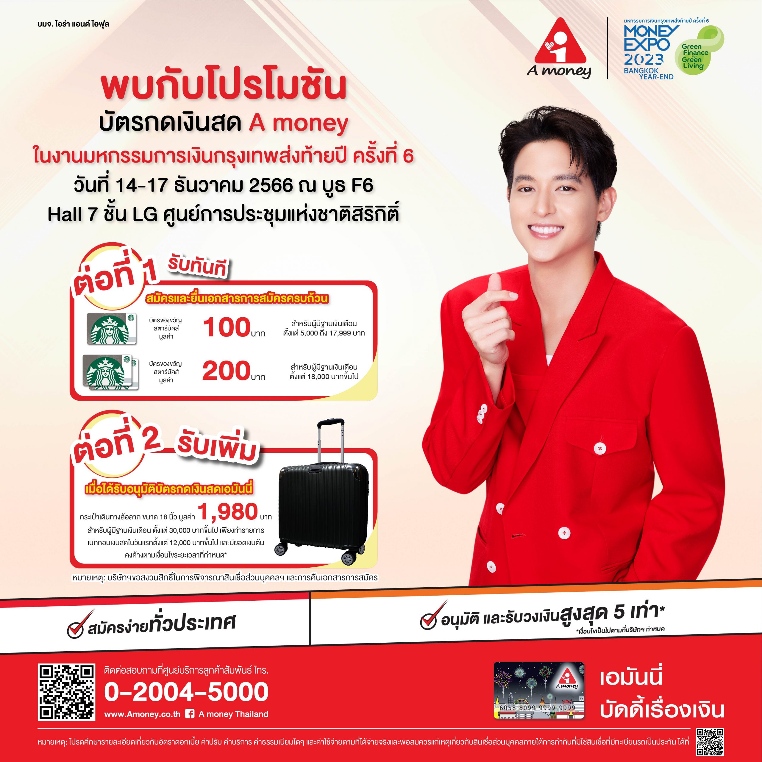 บริษัท ไอร่า แอนด์ ไอฟุล จำกัด (มหาชน) ผู้ให้บริการบัตรกดเงินสด เอมันนี่ (A money) ภายใต้คอนเซ็ปต์ “A money บัดดี้เรื่องเงิน” ยกทัพสินเชื่อส่วนบุคคลพร้อมข้อเสนอสุดพิเศษร่วมฉลองช่วงเทศกาลพิเศษส่งท้ายปี 2566 กับ “มหกรรมการเงินกรุงเทพส่งท้ายปี ครั้งที่ 6” พบกับโปรโมชันสินเชื่อส่วนบุคคลจากบัตรกดเงินสดเอมันนี่ แบบจัดเต็มถึง 2 ต่อ ต่อที่ 1 เมื่อสมัครและยื่นเอกสารครบถ้วน รับทันที! บัตรกำนัลสตาร์บัคส์ มูลค่าสูงสุด 200 บาท ต่อที่ 2 เมื่อได้รับอนุมัติและเบิกถอนเงินสด รวมถึงมียอดเงินคงค้างภายในเงื่อนไขที่กำหนด รับ กระเป๋าเดินทางล้อลาก ขนาด 18 นิ้ว มูลค่า 1,980 บาท เพิ่มอีกด้วย