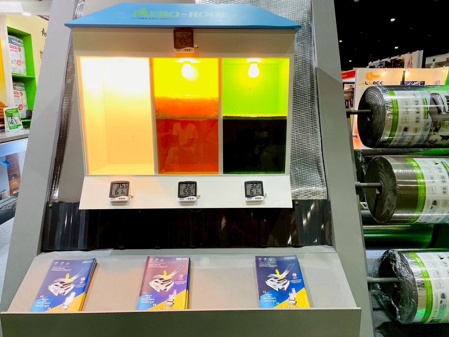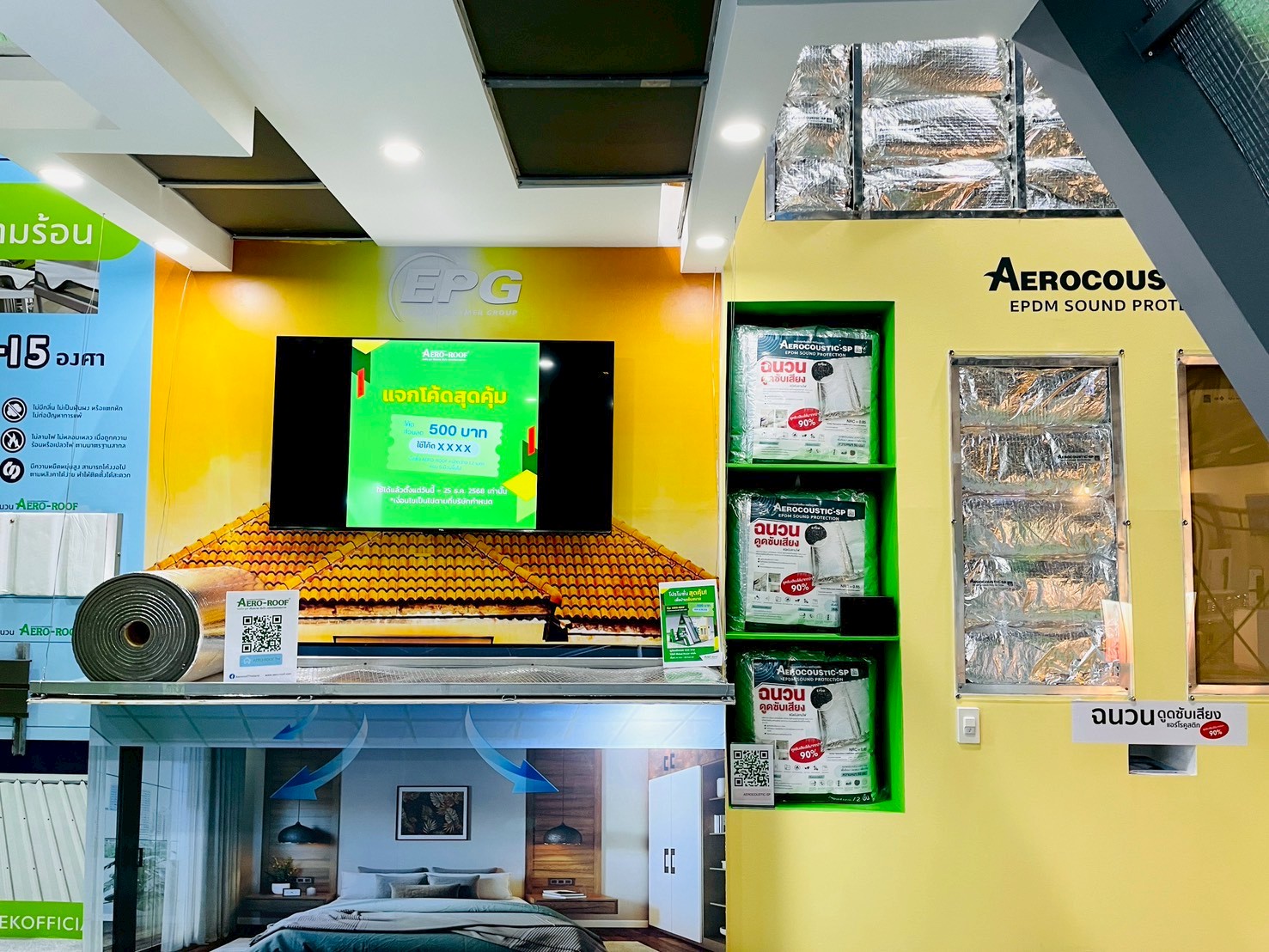 สำหรับการจัดแสดงสินค้าในครั้งนี้ AEROFLEX ได้จัดแสดงสินค้านวัตกรรมฉนวนกันความร้อนใต้หลังคา AERO-ROOF ใช้บุใต้หลังคา หรือฝ้าเพดาน เพื่อป้องกันความร้อนจากหลังคาเข้าสู่ตัวอาคาร ฉนวนกันความร้อนใต้หลังคา AERO-ROOF เป็นผู้ผลิตรายแรกที่ใช้ยางสังเคราะห์ ประเภท EPDM เคลือบผิวด้วยอลูมิเนียมฟอยล์เสริมเส้นใย มีกระบวนการผลิตที่ไม่ส่งผลกระทบต่อสภาพแวดล้อม รวมถึงไม่ก่อให้เกิดมลพิษต่อสังคมรอบข้างตลอดกระบวนการผลิต สนใจเยี่ยมชมบูธ บูธ H67-68, 95-96