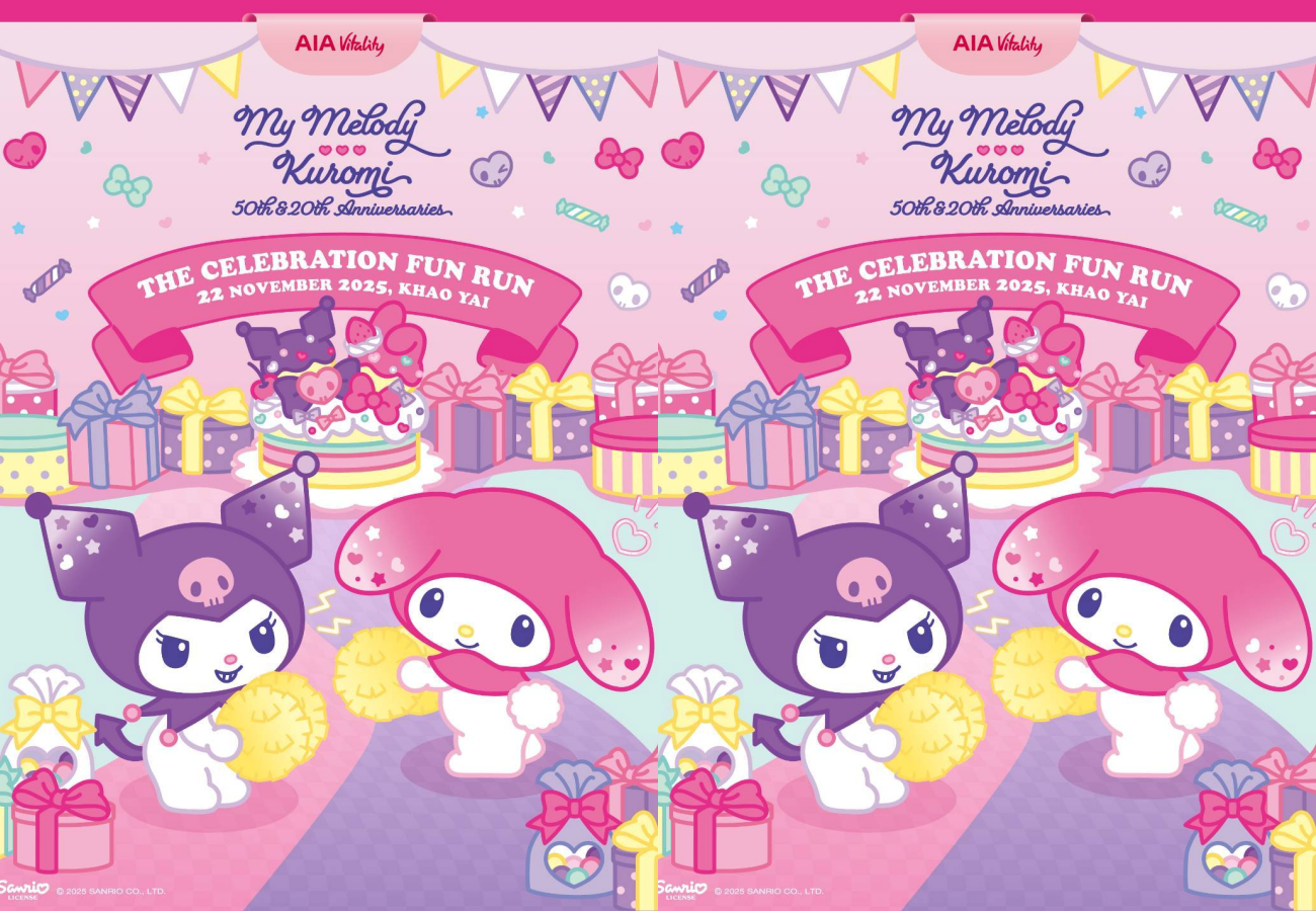 เอไอเอ ไวทัลลิตี้ (AIA Vitality) ฉลองครบรอบ 10 ปีในประเทศไทย เปิดตัวกิจกรรมวิ่งสุดคิวท์แห่งปี กับ “My Melody & Kuromi Celebration Fun Run” ซึ่งจะจัดขึ้นเป็นครั้งแรกในไทย วันเสาร์ที่ 22 พฤศจิกายน 2568 ณ โบนันซ่า เขาใหญ่ และเป็นส่วนหนึ่งในกิจกรรมของงาน AIA ONE BILLION DAY 2025 อีกทั้งยังเป็นการร่วมเฉลิมฉลองในโอกาสพิเศษครบรอบ 50 ปีของ My Melody และครบรอบ 20 ปีของ Kuromi ซึ่งนับเป็นคาร์แรคเตอร์ขวัญใจคนไทยหลาย ๆ คน โดยระยะทางวิ่งมีให้เลือกทั้งสิ้น 3 ระยะ ได้แก่