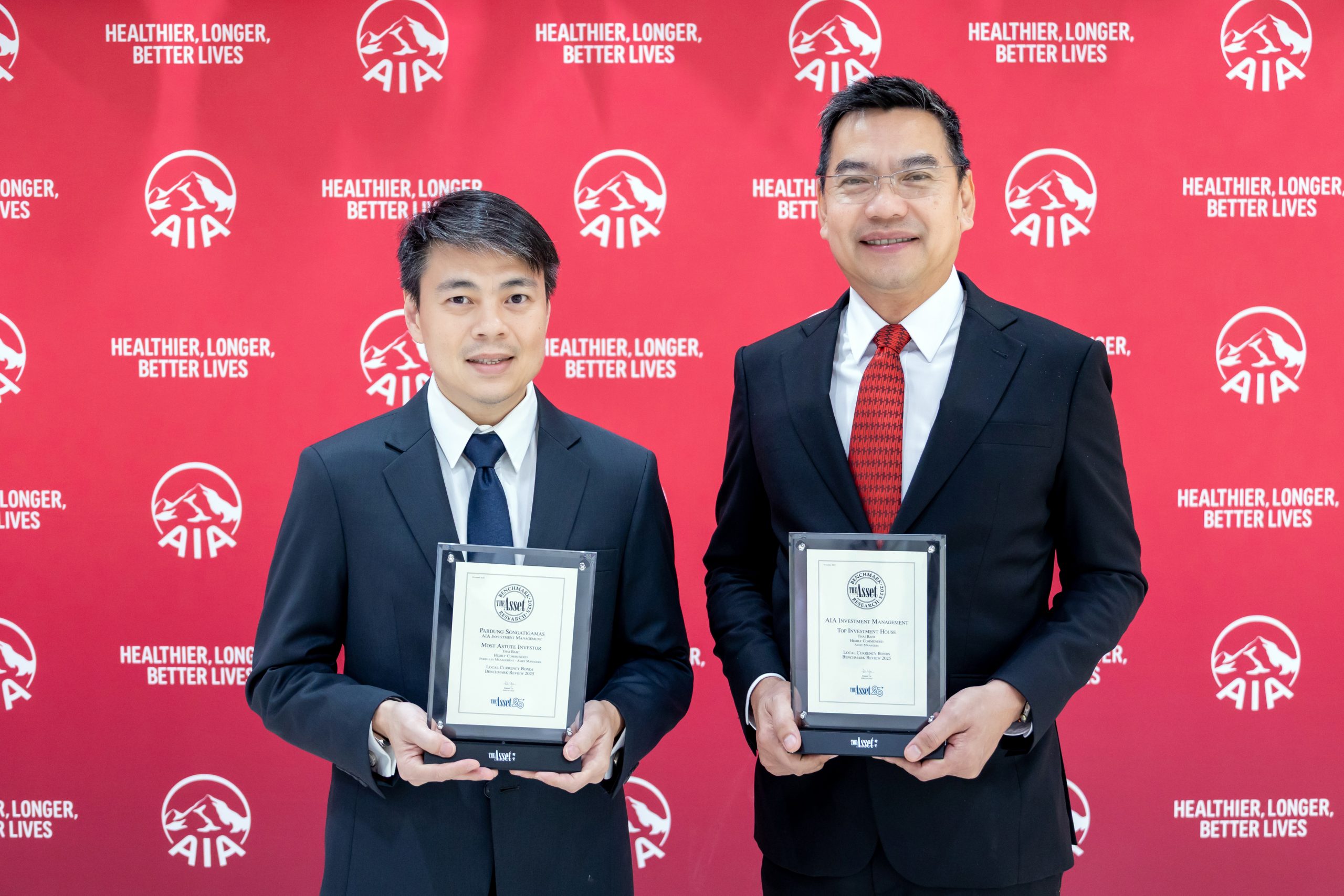บริษัท หลักทรัพย์จัดการกองทุนเอไอเอ (ประเทศไทย) จำกัด นำโดย นายสุขวัฒน์ ประเสริฐยิ่ง (ขวา) ประธานเจ้าหน้าที่บริหาร บลจ. เอไอเอ (ประเทศไทย) เป็นตัวแทนรับรางวัล TOP Investment Management ประเภท Local Currency Bonds Benchmark Review 2025 – Thai Baht และนายผดุง ทรงอธิกมาศ หัวหน้าฝ่ายการลงทุนตราสารหนี้ คว้ารางวัล Most Astute Investor ประเภท Local Currency Bonds Benchmark Review 2025 – Thai Baht จาก The Asset ในงานประกาศรางวัล Asset Benchmark Research Awards 2025 ที่จัดขึ้นเมื่อวันที่ 6 พฤศจิกายน 2568 ณ โรงแรม Grand Hyatt Singapore ประเทศสิงคโปร์ เพื่อยกย่องบริษัทจัดการลงทุนและผู้จัดการลงทุนที่มีความเชี่ยวชาญและวิสัยทัศน์โดดเด่นในตลาดตราสารหนี้สกุลเงินบาท รางวัลดังกล่าวสะท้อนถึงความมุ่งมั่นของ บลจ. เอไอเอ (ประเทศไทย) ในการบริหารเงินลงทุนอย่างมีประสิทธิภาพเพื่อสร้างผลตอบแทนที่มั่นคงและสม่ำเสมอในระยะยาวให้แก่ผู้ถือกรมธรรม์ เอไอเอ ยูนิต ลิงค์