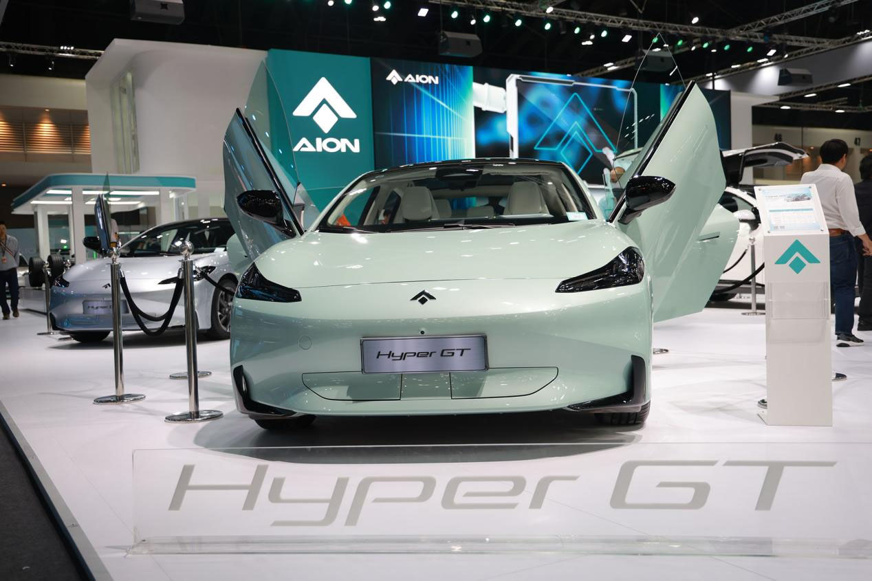 นอกจากนี้ในงาน Motor Expo 2023 AION ยังได้นำแบรนด์รถยนต์ไฟฟ้าระดับไฮเอนด์ของ GAC AION มาโชว์ด้วย อย่างเช่น Hyper GT รถสปอร์ตซีดานไฟฟ้า ที่มาพร้อมกับรูปลักษณ์ที่ดูดุดันและสง่างาม เปิดตัวครั้งแรกเมื่อวันที่ 3 กรกฎาคมที่ผ่านมา ด้วยราคาประมาณ 1,100,000 – 1,700,000 บาท (ในประเทศจีน) สร้างเสียงฮือฮาเป็นอย่างมาก และทำยอดขายไปได้มากถึง 2,000 คันในเดือนแรกของการเปิดตัว ถือเป็นรถสปอร์ตซีดานไฟฟ้าระดับไฮเอนด์ที่ทำยอดขายได้เร็วที่สุดนับตั้งแต่เปิดตัว ดีไซน์ภายนอกและภายในของ Hyper GT แฝงไว้ด้วยเส้นสายที่ดูสปอร์ต ผสานกับความหรูหราไว้ได้อย่างลงตัว พร้อมด้วยประตูแบบปีกผีเสื้อ (Butterfly Doors) ที่สามารถเปิด-ปิด ได้ด้วยการกดปุ่มเพียงครั้งเดียว รวมถึงสปอยเลอร์หลังแบบแอคทีฟ ที่จะทำงานเมื่อถึงความเร็วที่กำหนด หรือเลือกเปิด – ปิด ได้ตามความต้องการของผู้ขับขี่