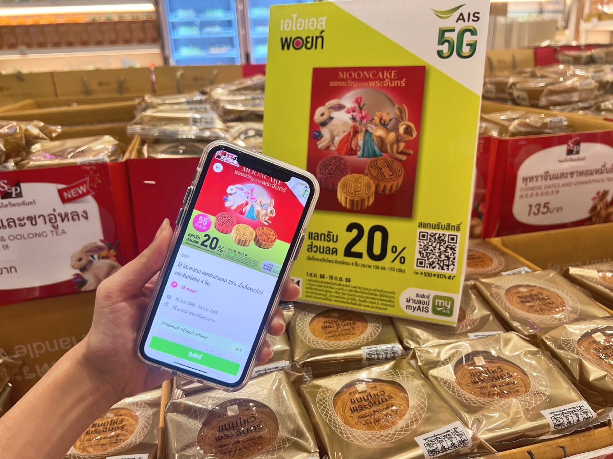 AIS ร่วมต้อนรับเทศกาลไหว้พระจันทร์ จับมือพาร์ทเนอร์ ส่งมอบความสุข เสริมความเป็นสิริมงคลให้ชีวิต ด้วยขนมไหว้พระจันทร์รสเลิศหลากหลายรสชาติน่าลิ้มลองจาก 4 ร้านชั้นนำ อาทิ S&P ที่ขนทัพขนมไหว้พระจันทร์เปลือกบางไส้แน่น วัตถุดิบชั้นเลิศ มาให้เลือกหลากหลายรสชาติ, ร้าน Mx Cake & Bakery ต้นตำรับขนมไหว้พระจันทร์ที่ส่งตรงจากฮ่องกง กับรสชาติขายดี Best Seller ‘คัสตาร์ดลาวา’, ร้าน Kyo Roll En ขนมไหว้พระจันทร์ที่ร่วม Collaboration กับสุดยอดเชฟ All-Star รวมดารา 4 ดาวมิชลิน Limited Edition จาก 4 เชฟมิชลิน 4 รสชาติ 4 สัญชาติ ทั้ง ไทย – จีน – ญี่ปุ่น – เยอรมัน และร้าน Black Canyon ที่ส่งมอบความอร่อยพร้อมความสุขด้วยขนมไหว้พระจันทร์คุณภาพระดับพรีเมียม มีให้เลือกถึง 5 รสชาติ ทุเรียนหมอนทองไข่แดง เมล็ดบัวไข่แดง แปดเซียน ยูซุแมคคาเดเมีย และ ชาเขียวพิสตาชิโอ โดย AIS ได้คัดสรรขนมไหว้พระจันทร์ที่ดีและมีคุณภาพส่งมอบสิทธิพิเศษให้ ลูกค้า AIS 5G และลูกค้า AIS Fibre สามารถนำคะแนนสะสม AIS Points แลกรับส่วนลดพิเศษ ตลอดเดือนกันยายน