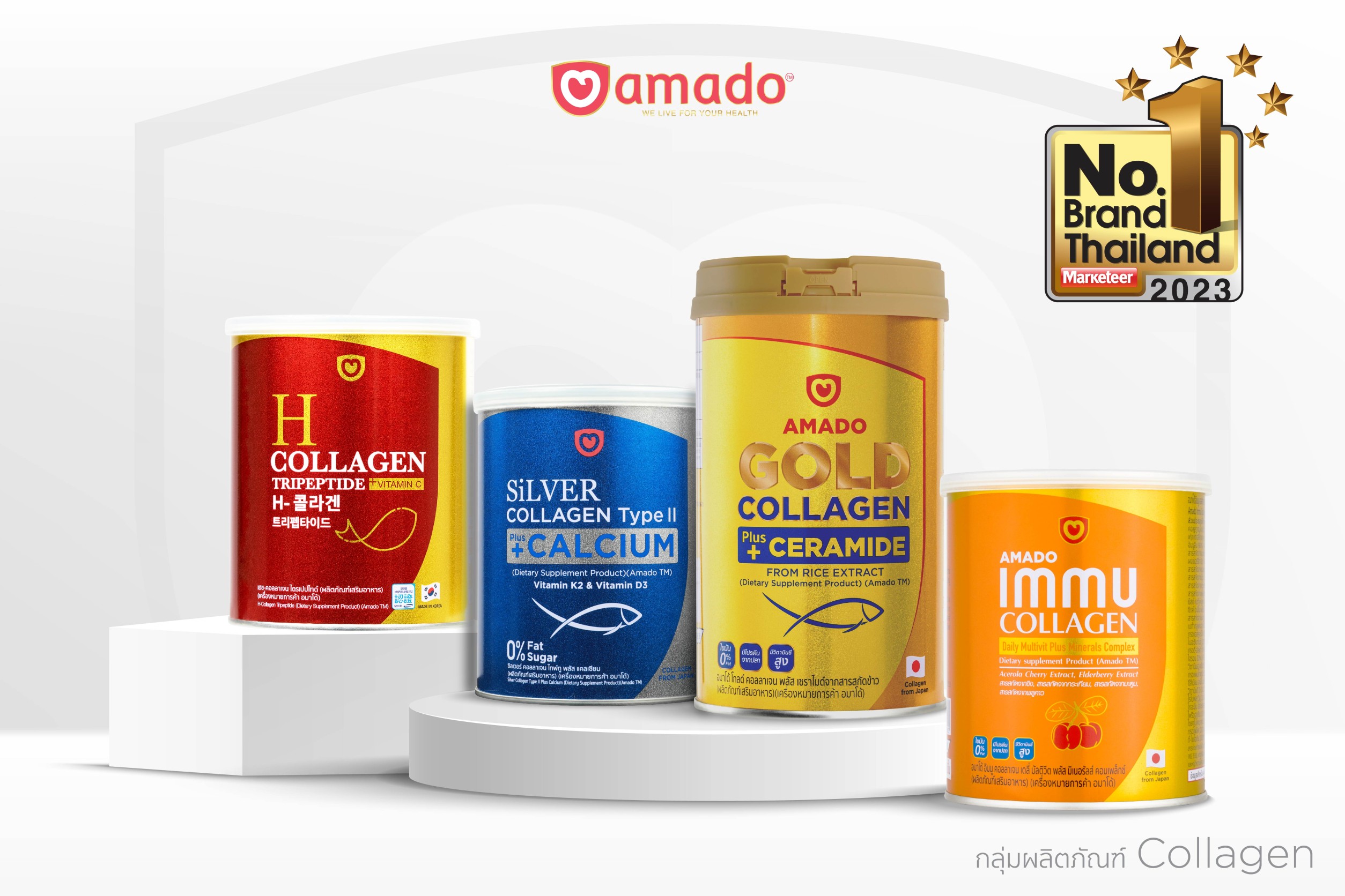 คอลลาเจน จาก “อมาโด้” ตอกย้ำความเป็น 1 คว้ารางวัล “Marketeer No.1 Brand Thailand 2023” ต่อเนื่องเป็นปีที่ 4 ครองแชมป์ผู้นำด้านคอลลาเจน (ชนิดผง) ได้รับเลือกเป็นแบรนด์ยอดนิยมอันดับ 1 จากผลการสำรวจความพึงพอใจผู้บริโภคโดยนิตยสาร Marketeer ประจำปี 2023