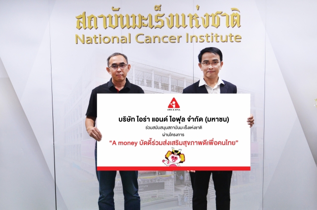 นายสมพร บุญเกิด (ซ้าย) ผู้อำนวยการฝ่ายวางแผนและกลยุทธ์การตลาด บริษัท ไอร่า แอนด์ ไอฟุล จำกัด (มหาชน) เป็นตัวแทนบริษัทฯ ในการส่งมอบเงินสนับสนุนให้กับสถาบันมะเร็งแห่งชาติ เพื่อสนับสนุนการดำเนินงานของสถาบันฯ ในการส่งเสริมสุขภาพ และป้องกันโรคมะเร็ง รวมทั้งดูแลรักษาและฟื้นฟูผู้ป่วยโรคมะเร็งผู้ยากไร้ ผ่านโครงการ “A money บัดดี้ร่วมส่งเสริมสุขภาพดีเพื่อคนไทย” ซึ่งมีวัตถุประสงค์ในการเข้าไปสนับสนุนหน่วยงานด้านสุขภาพต่าง ๆ โดยมี นายโชคชัย สุขเหลือง (ขวา) รองผู้อำนวยการด้านอำนวยการ สถาบันมะเร็งแห่งชาติ ให้เกียรติรับมอบและต้อนรับ ณ ห้องประชุมสมชาย สมบูรณ์เจริญ อาคารดำรงนิราดูร สถาบันมะเร็งแห่งชาติ เมื่อเร็ว ๆ นี้