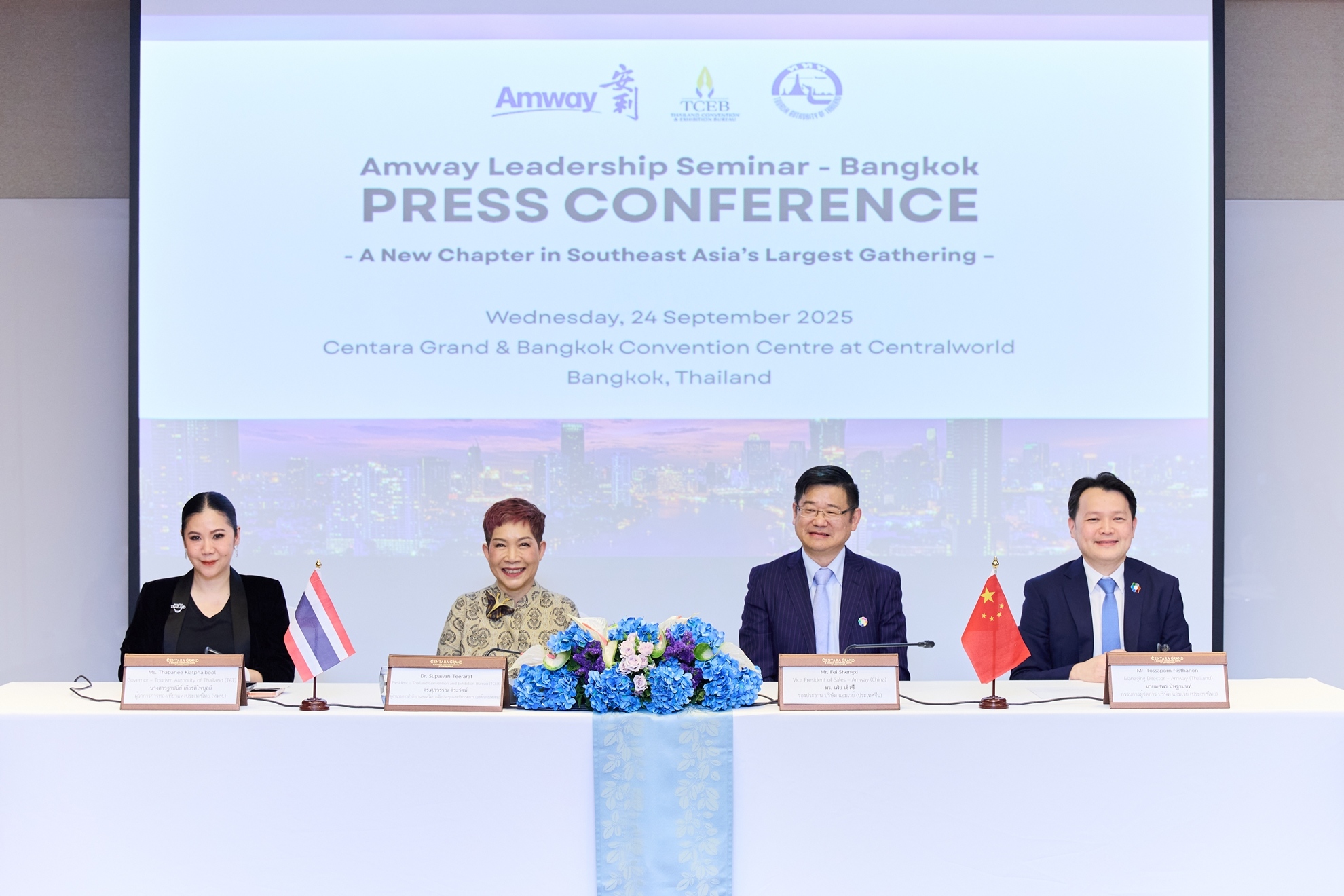 “เราภูมิใจที่ประเทศไทยยังคงเป็นจุดหมายปลายทางที่องค์กรระดับโลกไว้วางใจ โดยนอกจากแอมเวย์จีนแล้ว ในปลายปีนี้ แอมเวย์อินเดีย ก็จะพานักธุรกิจราว 800 คนมาจัดกิจกรรมที่ไทย และต่อเนื่องในปีหน้า ยังมีทั้งแอมเวย์ยุโรป กว่า 3,000 คน และ แอมเวย์ญี่ปุ่น อีกราว 1,600 คนที่จะตามมา การมาเยือนของนักธุรกิจแอมเวย์จากหลายประเทศเหล่านี้ สะท้อนบทบาทของไทยในฐานะศูนย์กลางการจัดประชุมและท่องเที่ยวของภูมิภาค ซึ่งคาดว่าจะสร้างรายได้รวมกันมากกว่า 1,000 ล้านบาทให้กับภาคเศรษฐกิจและการท่องเที่ยวไทย