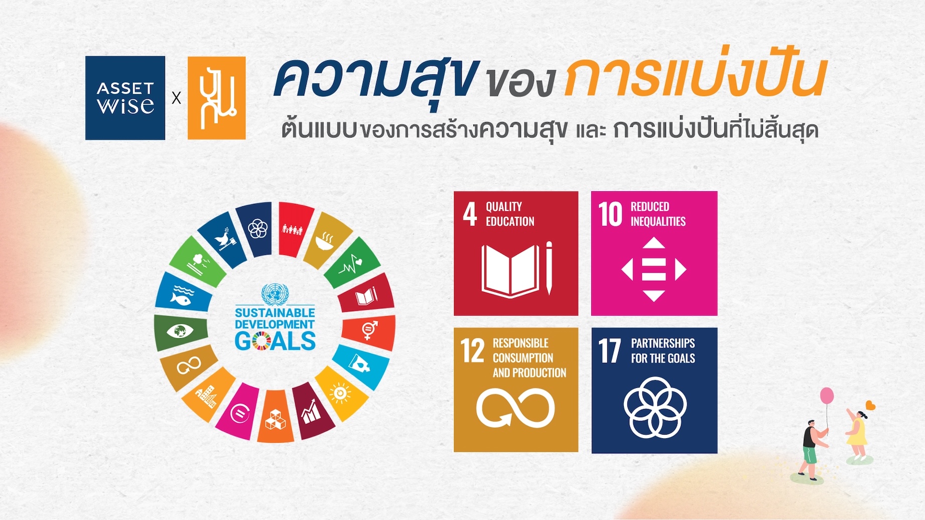 ความร่วมมือของแอสเซทไวส์และร้านปันกัน สอดคล้องกับเป้าหมายด้านความยั่งยืน (Sustainable Development Goals: SDGs) ครอบคลุม 4 มิติ ทั้งด้านการสนับสนุนโอกาสทางการศึกษาที่มีคุณภาพ (Quality Education) และการลดความเหลื่อมล้ำในกลุ่มเด็กและเยาวชน (Reduce Inequality) รวมถึงส่งเสริมการผลิตและบริโภคที่รับผิดชอบ (Responsible Consumption and Production) ด้วยการแบ่งปันสิ่งของเพื่อให้เกิดการใช้ซ้ำอย่างคุ้มค่า และการรวมพลังกันเพื่อเป้าหมายการพัฒนาอย่างยั่งยืน (Partnerships for the Goals) ซึ่งสะท้อนถึงเจตนารมณ์ของแอสเซทไวส์ที่ไม่เพียงนำแนวคิดความยั่งยืนมาประยุกต์ใช้ในธุรกิจเท่านั้น แต่มุ่งลงมือสร้างสังคมแห่งการแบ่งปันให้เกิดขึ้นจริง ผ่านโครงการ “Punn by AssetWise” และ “ร้านปันกัน x AssetWise” ที่ถือเป็นอีกหนึ่งแนวคิดในการเติบโตเคียงข้างสังคม