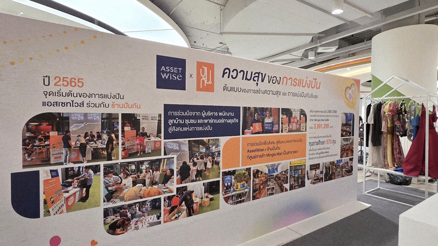 แอสเซทไวส์ ปลุกพลังแห่งการแบ่งปัน ปั้นโมเดลแห่งการให้ ต่อยอดแนวคิดร้านปันกัน สู่ “AssetWise x PANKAN Showcase” ต้นแบบแห่งการแบ่งปันความสุขที่ทุกคนมีส่วนร่วมได้ ผนึกพลังผู้บริหาร-คนดัง-พาร์ทเนอร์ ร่วมนำของรักของใช้มาแบ่งปันในงาน “ถนนปันกัน ครั้งที่ 11” โดยรายได้จากการจำหน่ายร่วมสมทบเป็นทุนการศึกษา เพื่อลดความเหลื่อมล้ำ-สร้างความเท่าเทียมให้เด็กไทย พร้อมส่งเสริมการใช้ซ้ำอย่างรู้คุณค่า สอดรับเป้าหมาย SDGs ตลอดทั้งโครงการมอบทุนการศึกษาไปแล้วกว่า 617 ทุน พร้อมเดินหน้าสร้างความสุขให้สังคมอย่างยั่งยืน