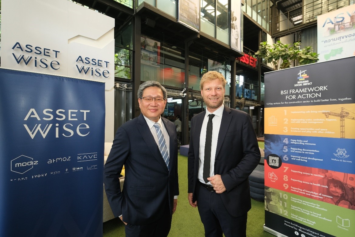 วุฒิ วิพันธ์พงษ์ (ซ้าย) รองประธานเจ้าหน้าที่บริหารความยั่งยืนทางธุรกิจและสิ่งแวดล้อม บริษัท แอสเซทไวส์ จำกัด (มหาชน) จับมือ เซบาสเตียน มอร์เชอร์วาลิเย่ร์ (ขวา) Executive Director มูลนิธิเครือข่ายพัฒนาบ้านเด็ก ลงนามบันทึกความเข้าใจ (MOU) การยกระดับคุณภาพชีวิตแรงงานในแคมป์ก่อสร้างของแอสเซทไวส์ โดยมีวัตถุประสงค์เพื่อส่งเสริมให้แรงงานคุณภาพชีวิตที่ดี อยู่ในสภาพแวดล้อมที่มีคุณภาพและเข้าถึงหลักโครงสร้างพื้นฐาน ไม่ว่าจะเป็น การพัฒนาระบบสาธารณูปโภคในแคมป์ที่พักอาศัยของคนงานก่อสร้างให้เป็นไปตามมาตรฐาน การสร้างพื้นที่ปลอดภัยสำหรับเด็กที่อยู่อาศัยในแคมป์ระหว่างที่พ่อแม่ไปทำงาน รวมถึงการส่งเสริมให้บุตรหลานของแรงงานได้มีโอกาสเข้าถึงระบบการศึกษา เพราะแรงงานคือทรัพยากรบุคคลที่เป็นหัวใจสำคัญในอุตสาหกรรมการก่อสร้าง ที่แอสเซทไวส์ให้ความสำคัญมาอย่างต่อเนื่อง