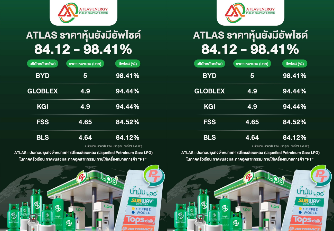 บมจ.แอตลาส เอ็นเนอยี (ATLAS) ผู้จัดจำหน่ายก๊าซ LPG ภายใต้แบรนด์ “PT” โชว์ศักยภาพ ครองส่วนแบ่งการตลาดเป็นเบอร์หนึ่งภาคธุรกิจขนส่ง ที่สำคัญซ่อนเพชรเม็ดงามคือ“ธุรกิจสื่อโฆษณาบนรถแท็กซี่” หรือ Max Taxi Ads ที่มีอัตราการทำกำไรโดดเด่น และมีศักยภาพเติบโตได้อีกมาก นำเงินรุกขยายสถานีบริการ-เครือข่ายธุรกิจ เพิ่มโอกาสการเติบโต หนุนอนาคตมั่นคง 5 โบรกเกอร์ฟันธงเป็นหุ้นเด่นอนาคตไกล เคาะราคาเป้าหมายสูงสุด 5.00 บ. อัพไซด์เพียบ 84.12-98.41 %