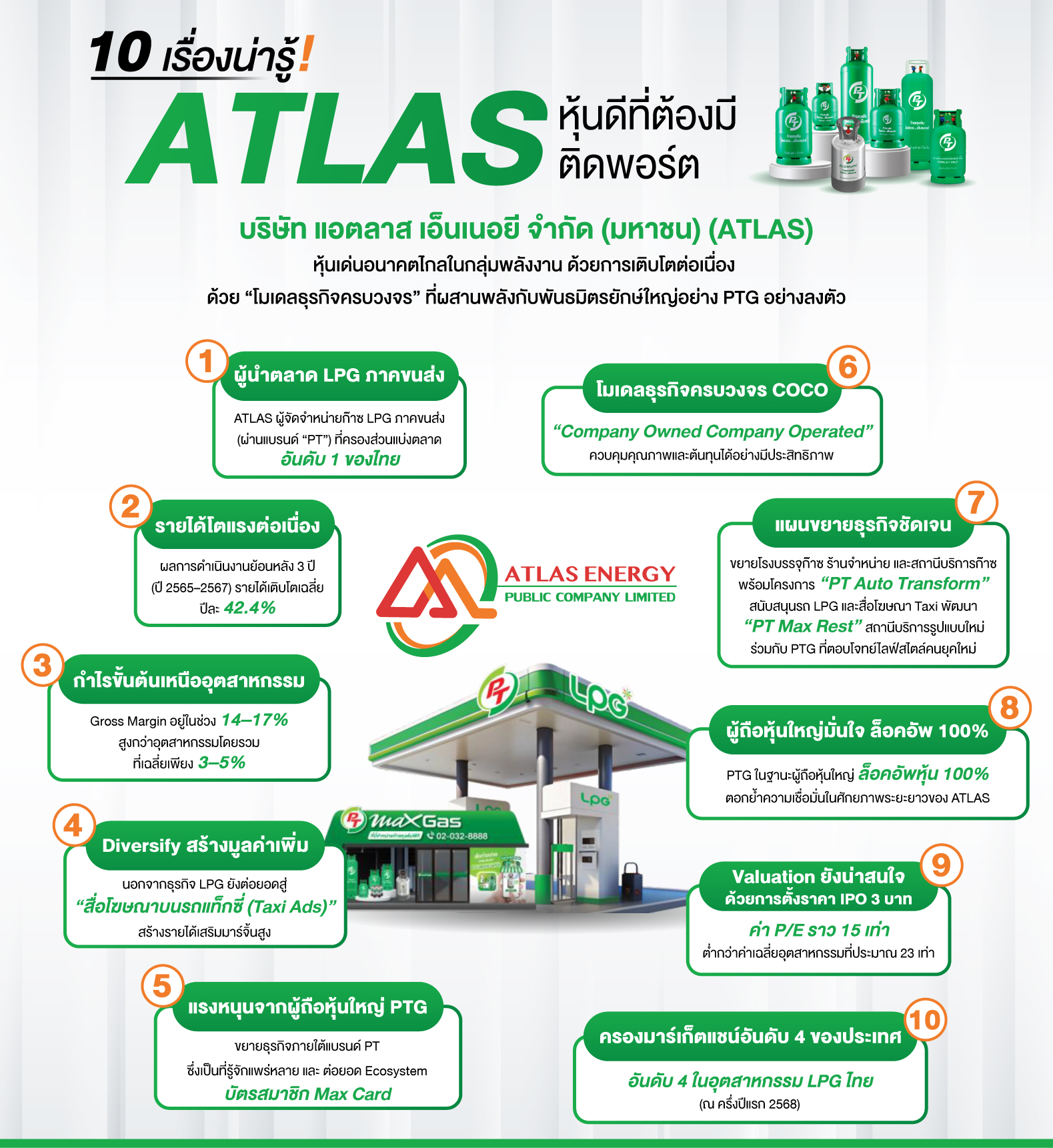 บริษัท แอตลาส เอ็นเนอยี จำกัด (มหาชน) (ATLAS) หุ้นเด่นอนาคตไกลในกลุ่มพลังงาน ด้วยการเติบโตต่อเนื่อง“โมเดลธุรกิจครบวงจร” ที่ผสานพลังกับพันธมิตรยักษ์ใหญ่อย่าง PTG อย่างลงตัว