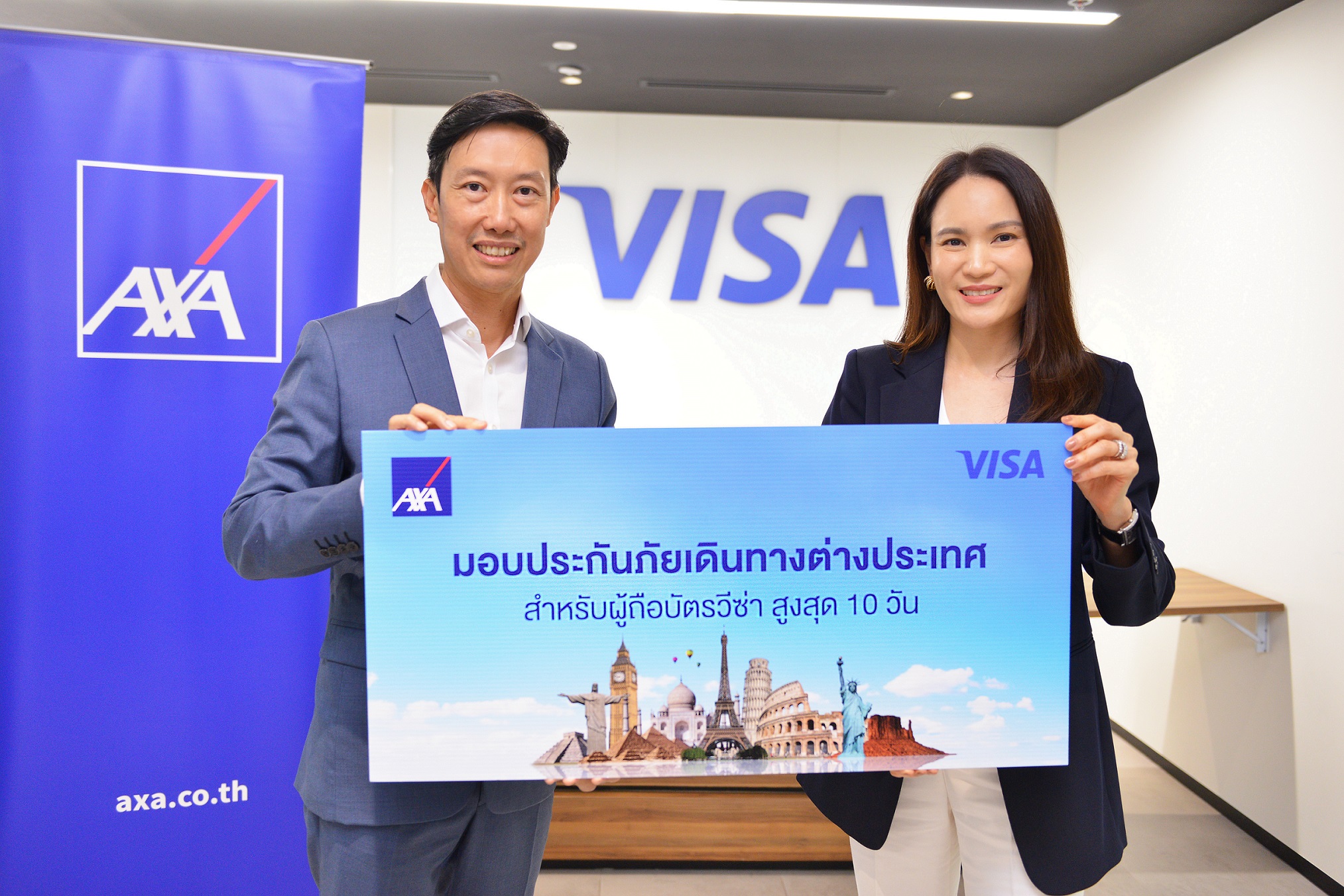 แอกซ่าประกันภัย ผู้นำด้านธุรกิจประกันภัยระดับโลก เดินหน้าสร้างประสบการณ์ใหม่เพื่อลูกค้าอย่างต่อเนื่อง ร่วมมือ วีซ่า ผู้นำการให้บริการการชำระเงินดิจิทัลระดับโลก เพิ่มความสะดวกแก่นักเดินทางทั่วโลกให้ได้รับความคุ้มครองที่ครอบคลุม มอบสิทธิพิเศษสำหรับผู้ถือบัตรวีซ่า รับฟรี ประกันภัยการเดินทางต่างประเทศจากแอกซ่า สูงสุด 10 วัน เพื่อให้ท่านอุ่นใจในทุกการเดินทาง พร้อมตอบโจทย์ทุกไลฟ์สไตล์ของนักท่องเที่ยวได้อย่างรอบด้าน