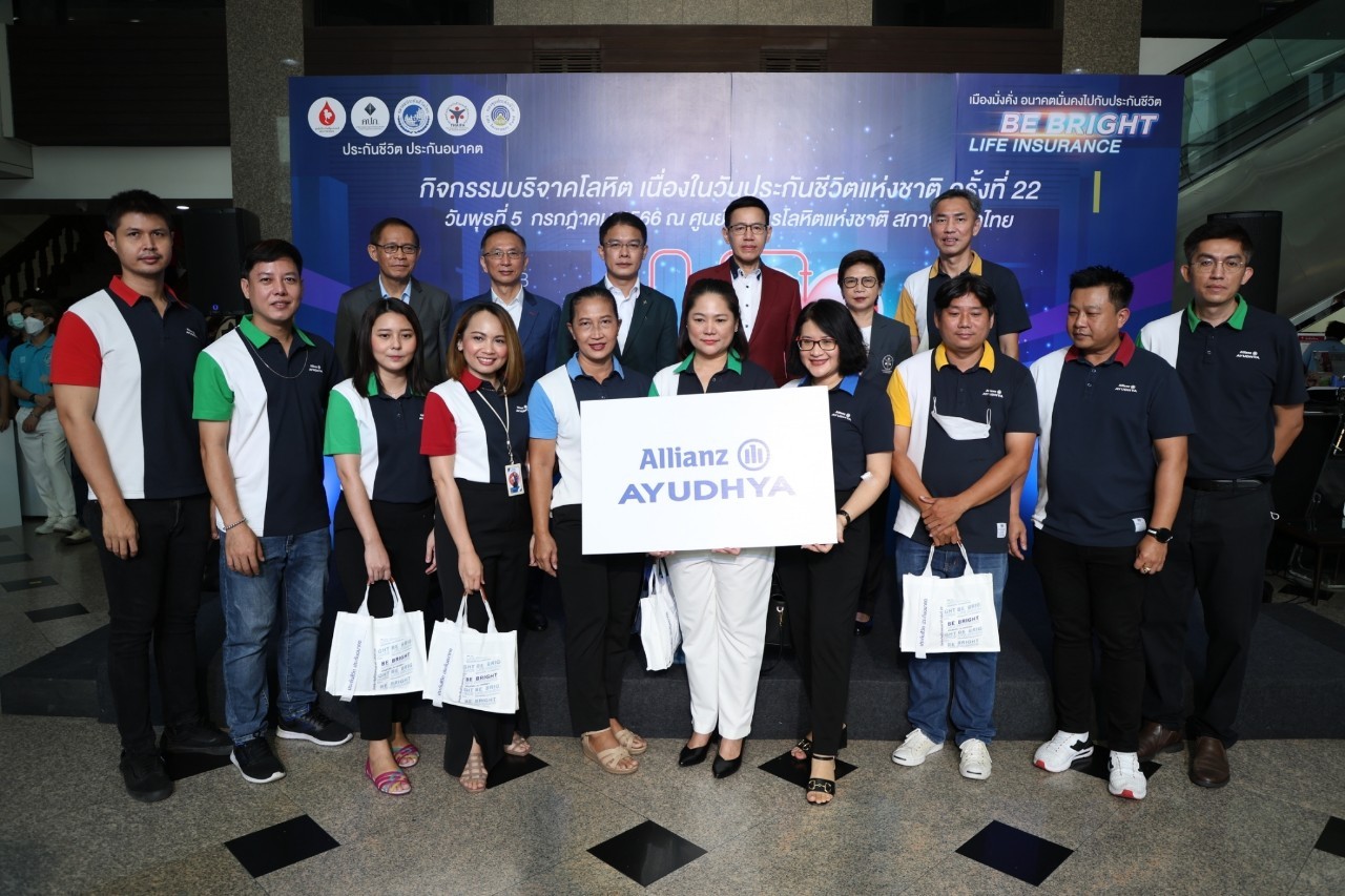 บมจ. อลิอันซ์ อยุธยา ประกันชีวิต นำทีมตัวแทนฝ่ายขายและพนักงาน ร่วมกิจกรรมบริจาคโลหิต เพื่อช่วยเหลือผู้ป่วยทั่วประเทศ เนื่องในวันประกันชีวิตแห่งชาติ ครั้งที่ 22 จัดโดยสำนักงาน คปภ. สมาคมประกันชีวิตไทย และสมาคมตัวแทนประกันชีวิตและที่ปรึกษาการเงิน โดยมี นายสุทธิพล ทวีชัยการ เลขาธิการคณะกรรมการกำกับและส่งเสริมการประกอบธุรกิจประกันภัย ให้เกียรติร่วมถ่ายภาพ ณ ศูนย์บริการโลหิตแห่งชาติ สภากาชาดไทย เมื่อเร็วๆนี้
