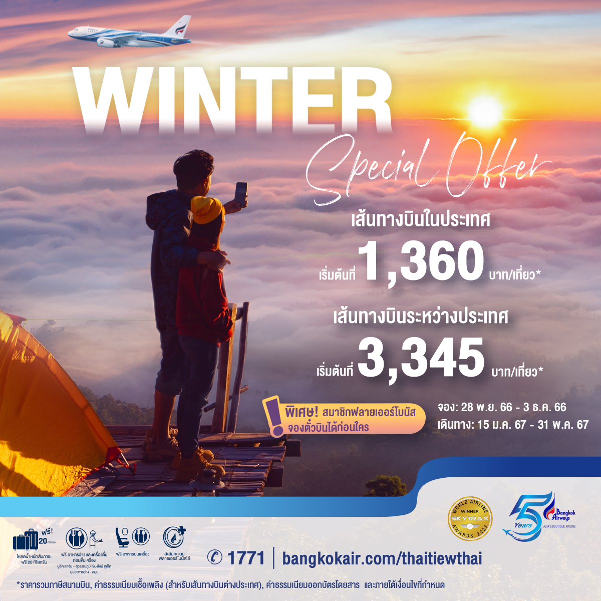 บางกอกแอร์เวย์ส จัดโปร “Winter Special Offer” เริ่มต้น 1,360 บาท* เปิดจอง 30 พ.ย. 66