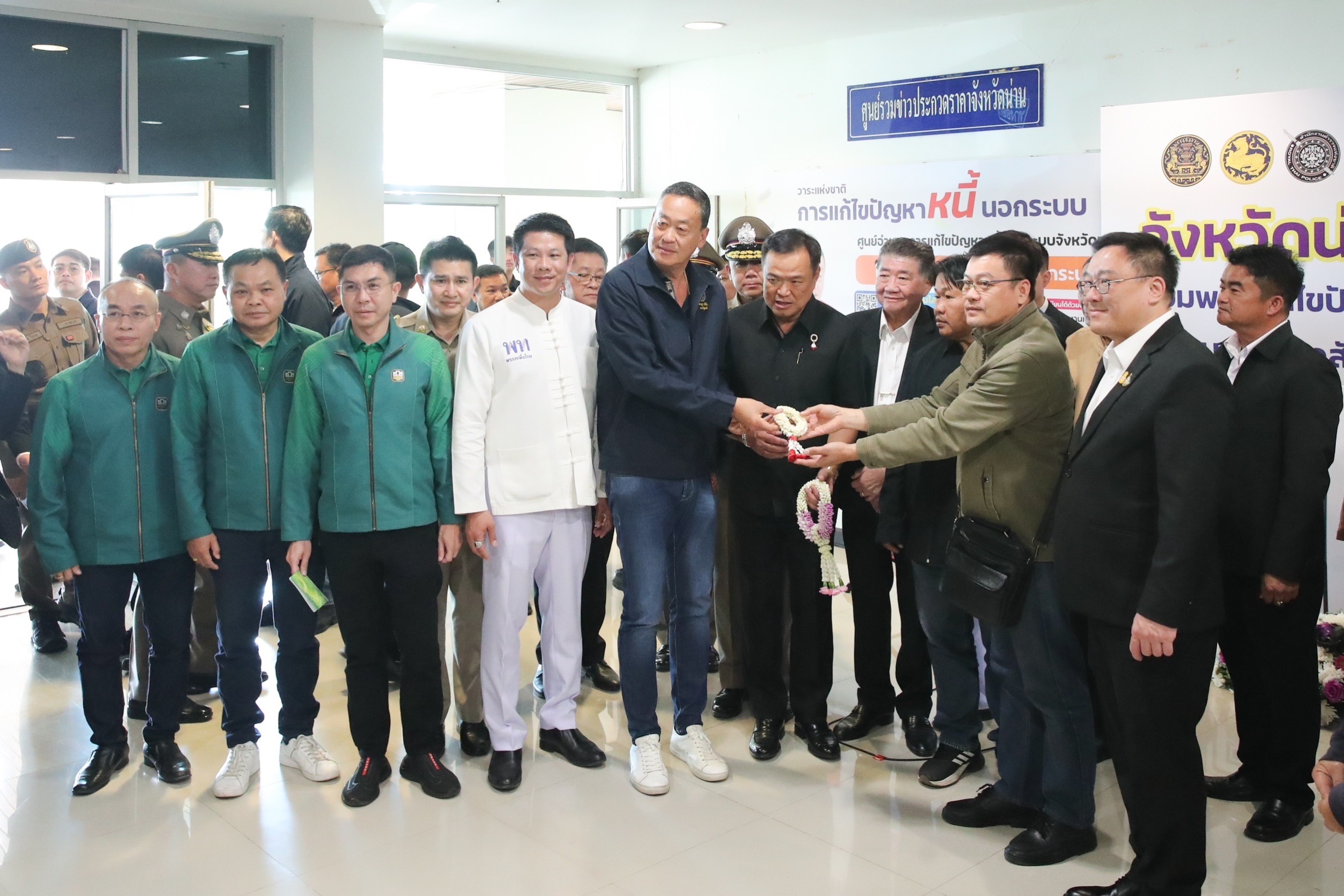 นายเศรษฐา ทวีสิน นายกรัฐมนตรีและรัฐมนตรีว่าการกระทรวงการคลัง ลงพื้นที่ติดตามการดำเนินมาตรการแก้หนี้นอกระบบ โดยเข้าร่วมประชุมและมอบนโยบายในการขับเคลื่อนมาตรการดังกล่าวให้กับหน่วยงานราชการ พร้อมรับฟังการเจรจาไกล่เกลี่ยแก้ไขปัญหาหนี้ระหว่างเจ้าหนี้และลูกหนี้ กับหน่วยงานที่เกี่ยวข้อง โดยมี นายภูมิธรรม เวชยชัย รองนายกรัฐมนตรีและรัฐมนตรีว่าการกระทรวงพาณิชย์ นายอนุทิน ชาญวีรกูล รัฐมนตรีว่าการกระทรวงมหาดไทย นายจุลพันธ์ อมรวิวัฒน์ รัฐมนตรีช่วยว่าการกระทรวงการคลัง และนายฉัตรชัย ศิริไล ผู้จัดการธนาคารเพื่อการเกษตรและสหกรณ์การเกษตร (ธ.ก.ส.) พร้อมคณะผู้บริหารและพนักงานในพื้นที่ ให้การต้อนรับ ณ ศาลากลางจังหวัดน่าน ตำบลไชยสถาน อำเภอเมือง จังหวัดน่าน