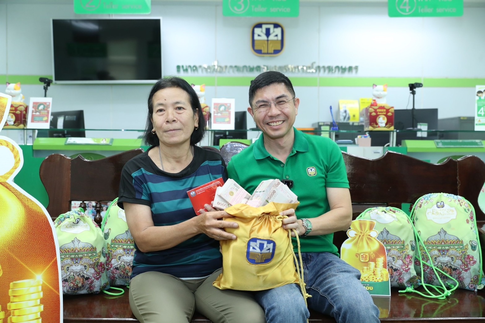 นายฉัตรชัย ศิริไล ผู้จัดการธนาคารเพื่อการเกษตรและสหกรณ์การเกษตร (ธ.ก.ส.) ลงพื้นที่ร่วมแสดงความยินดีพร้อมมอบเงินรางวัลที่ 1 Grand Prize จำนวน 60 ล้านบาท ให้กับลูกค้า ธ.ก.ส. สาขากาญจนบุรี จังหวัดกาญจนบุรี เจ้าของสลากหมายเลข GC 4568249 ผู้โชคดีจากการฝากสลาก ธ.ก.ส. ชุดถุงทอง งวดประจำวันที่ 16 กุมภาพันธ์ 2567 โดยฝากทั้งหมด จำนวน 300 หน่วย เป็นเงิน 600,000 บาท ณ ธ.ก.ส. สาขาในเขตพื้นที่ จังหวัดกาญจนบุรี
