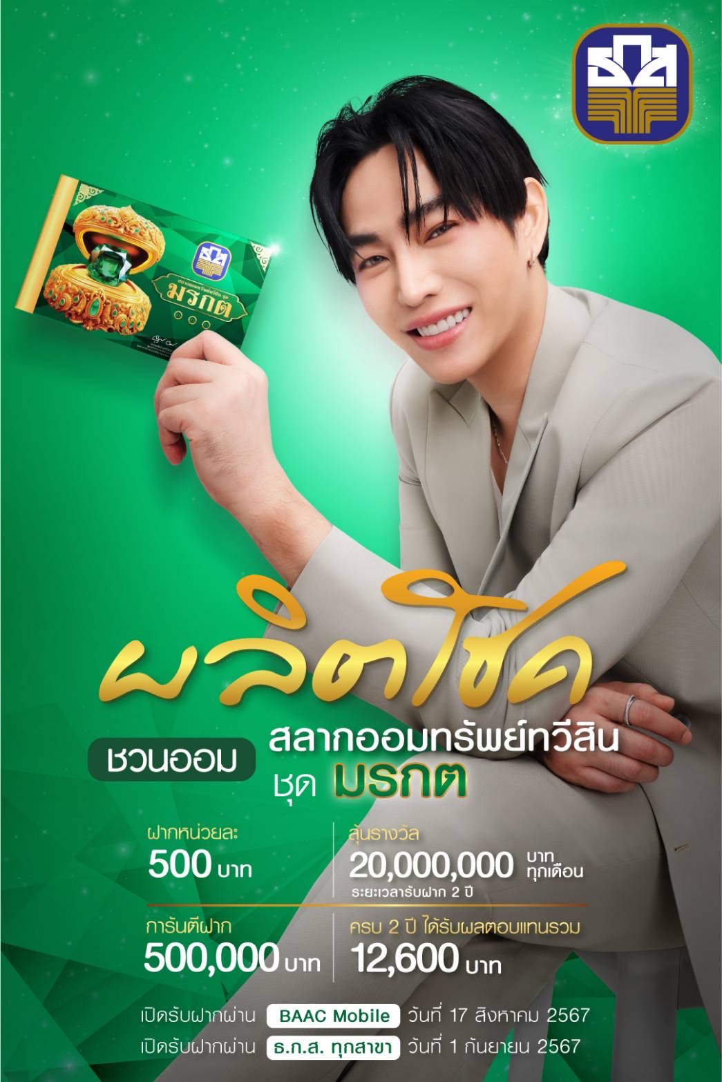 ธ.ก.ส. มอบโชค รวยเหลือแจกกับสลากออมทรัพย์ทวีสิน ชุดมรกต ฝาก 500 ลุ้น 20 ล้านทุกเดือน เปิดรับฝากผ่าน BAAC Mobile 17 ส.ค. นี้