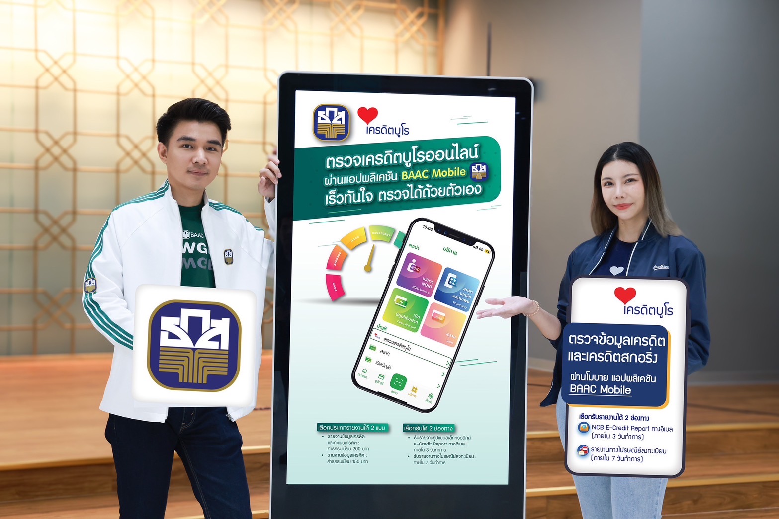 ธ.ก.ส. ร่วมกับ เครดิตบูโรฯ ให้บริการตรวจข้อมูลเครดิตและเครดิตสกอริ่ง ผ่านแอปพลิเคชัน “BAAC Mobile” ให้ประชาชนตรวจสุขภาพทางการเงินได้ง่ายสะดวก ตอบโจทย์พฤติกรรมลูกค้ายุคดิจิทัล ครบทุกข้อมูลสินเชื่อ รู้เท่าทันและป้องกันภัยไซเบอร์ทางการเงิน เลือกรับรายงานทางอีเมลภายใน 3 วันทำการ หรือรับผลทางไปรษณีย์ภายใน 7 วันทำการ เพื่อตรวจสอบข้อมูลเครดิตของตนเอง รู้เท่าทัน สถานะทางการเงินได้แล้ววันนี้เป็นต้นไป