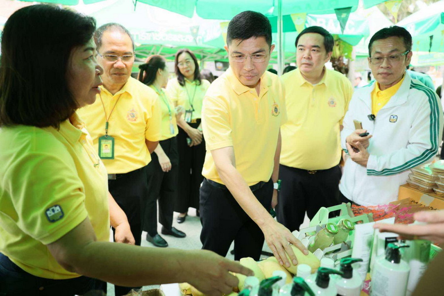 นายฉัตรชัย ศิริไล ผู้จัดการธนาคารเพื่อการเกษตรและสหกรณ์การเกษตร (ธ.ก.ส.) พร้อมคณะผู้บริหารเยี่ยมชมบูธในงานตลาดนัดของดีวิถีชุมชน ภายใต้ธีม “Western Farm Fair” ในโอกาสครบรอบวันสถาปนา ธ.ก.ส. ปีที่ 59 ที่ยกผลผลิตสินค้าดัง เจ้าเด็ด จากเกษตรกรลูกค้า ธ.ก.ส. ทั่วประเทศโดยเฉพาะในพื้นที่ภาคตะวันตกมาไว้ในงานครั้งนี้ อาทิ ผักผลไม้อินทรีย์นานาชนิด ผลิตภัณฑ์สินค้าจากผู้ประกอบการ SME และ ผลิตภัณฑ์ที่ได้รับมาตรฐานคุณภาพ A-Product กว่า 60 ร้านค้า คัดสรรส่งตรงมาไว้ในงาน โดยบรรยากาศในวันแรก มีประชาชนเข้ามาจับจ่ายใช้สอยอย่างคึกคัก