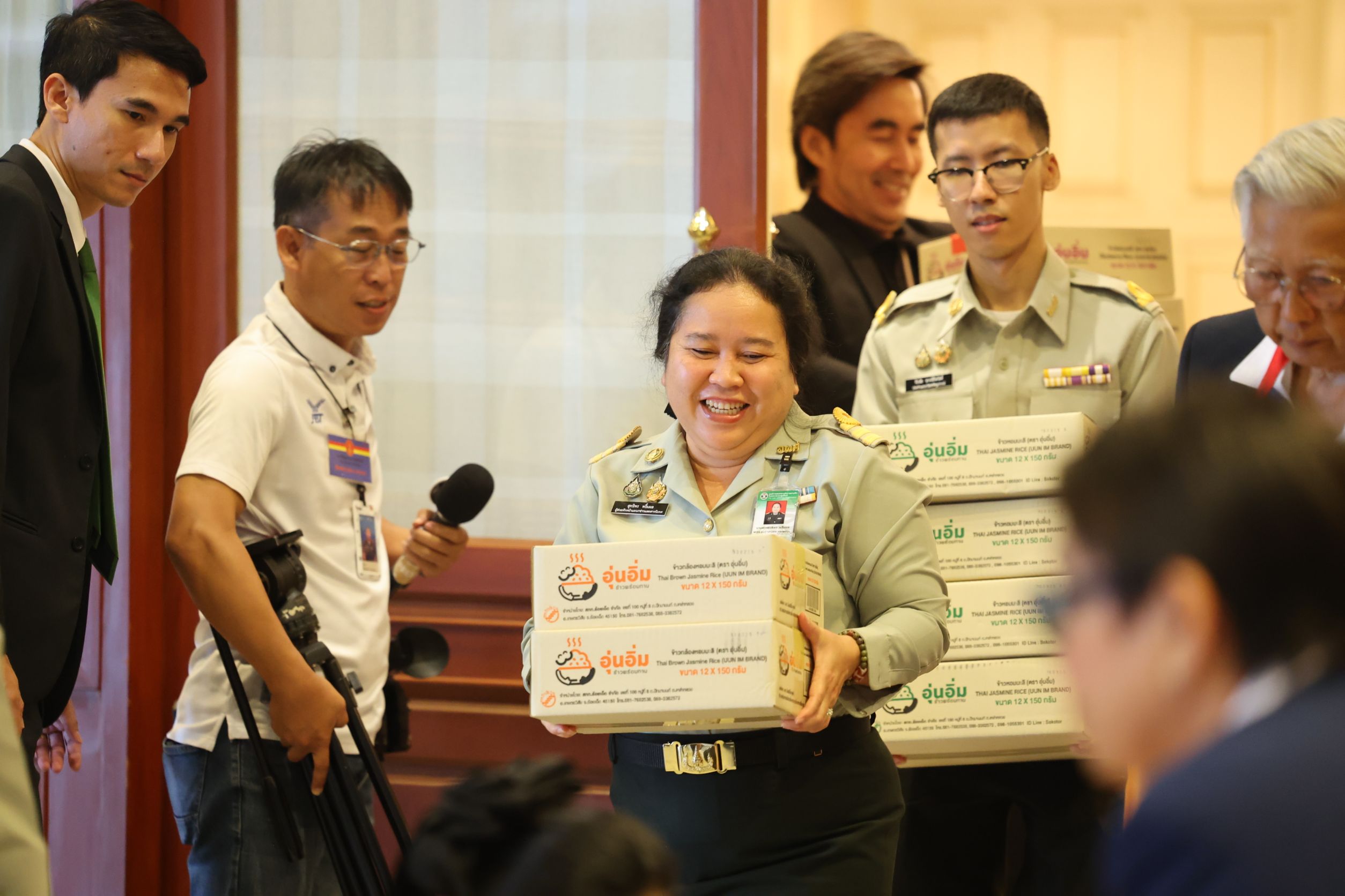 นายฉัตรชัย ศิริไล ผู้จัดการ ธนาคารเพื่อการเกษตรและสหกรณ์การเกษตร (ธ.ก.ส.) มอบข้าวพร้อมทานตรา “อุ่นอิ่ม” ทั้งข้าวหอมมะลิ ข้าวกล้องหอมมะลิ และข้าวไรซ์เบอร์รี่ จำนวนทั้งสิ้น 12,000 ถ้วย ให้แก่กองทัพบก โดยมี พลเอก เอกรัตน์ ช้างแก้ว ประธานคณะที่ปรึกษากองทัพบก เป็นสักขีพยาน และมีพลโท บุญสิน พาดกลาง แม่ทัพภาคที่ 2 เป็นผู้รับมอบ สำหรับนำไปให้กับกำลังพลในพื้นที่ใช้ในการบริโภคเพื่อสนับสนุนการดำเนินงานของหน่วยทหารและเจ้าหน้าที่ในการปฏิบัติภารกิจในพื้นที่ชายแดนเพื่อรักษาอธิปไตยและความสงบให้กับประชาชนและประเทศชาติหรือในการปฏิบัติภารกิจบรรเทาทุกข์เร่งด่วนเพื่อช่วยเหลือประชาชน หลังจากก่อนหน้านี้ข้าวพร้อมทานตรา “อุ่นอิ่ม” ได้ถูกส่งมอบไปยังเจ้าหน้าที่ทหารเพื่อภารกิจในพื้นที่ชายแดนผ่านหน่วยงานต่าง ๆ ไปแล้วกว่า 24,000 ถ้วย โดยข้าวพร้อมทานตรา “อุ่นอิ่ม” ถือเป็นผลิตภัณฑ์ของเกษตรกรที่จัดทำโดยสหกรณ์การเกษตรเพื่อการตลาดลูกค้า ธ.ก.ส. ร้อยเอ็ด (สกต.ร้อยเอ็ด) ที่ ธ.ก.ส. ได้เข้าไปยกระดับสินค้า เพื่อเพิ่มมูลค่าให้กับผลิตภัณฑ์ ตั้งแต่ขั้นตอนการพัฒนาโดยใช้นวัตกรรมและเทคโนโลยีเข้ามาแปรรูปข้าวให้มีคุณภาพ อร่อยได้มาตรฐาน สามารถทานได้ทันที หรืออุ่นในไมโครเวฟเพียง 60 วินาที เพื่อเพิ่มความอร่อย และยังสามารถเก็บในอุณหภูมิปกติได้นานถึง 18 เดือน โดยไม่จำเป็นต้องแช่เย็น ผู้ที่สนใจสามารถสั่งซื้อได้ที่ สกต.ร้อยเอ็ด จำกัด โทร.088-338-2572 โดยมีนายชาคริต ดิเรกวัฒนชัย รองกรรมการผู้อำนวยการสำนักกิจการและสื่อสารองค์กร บริษัท บีอีซี เวิลด์ จำกัด (มหาชน) พร้อมด้วย พลเอก เดชนิธิศ เหลืองงามขำ ผู้อำนวยการองค์การสงเคราะห์ทหารผ่านศึก (ผอ.อผศ.) และหน่วยงานพันธมิตรร่วมในพิธีส่งมอบ ณ อาคาร 2 กองบัญชาการกองทัพบก ถนนราชดำเนินนอก กรุงเทพมหานคร