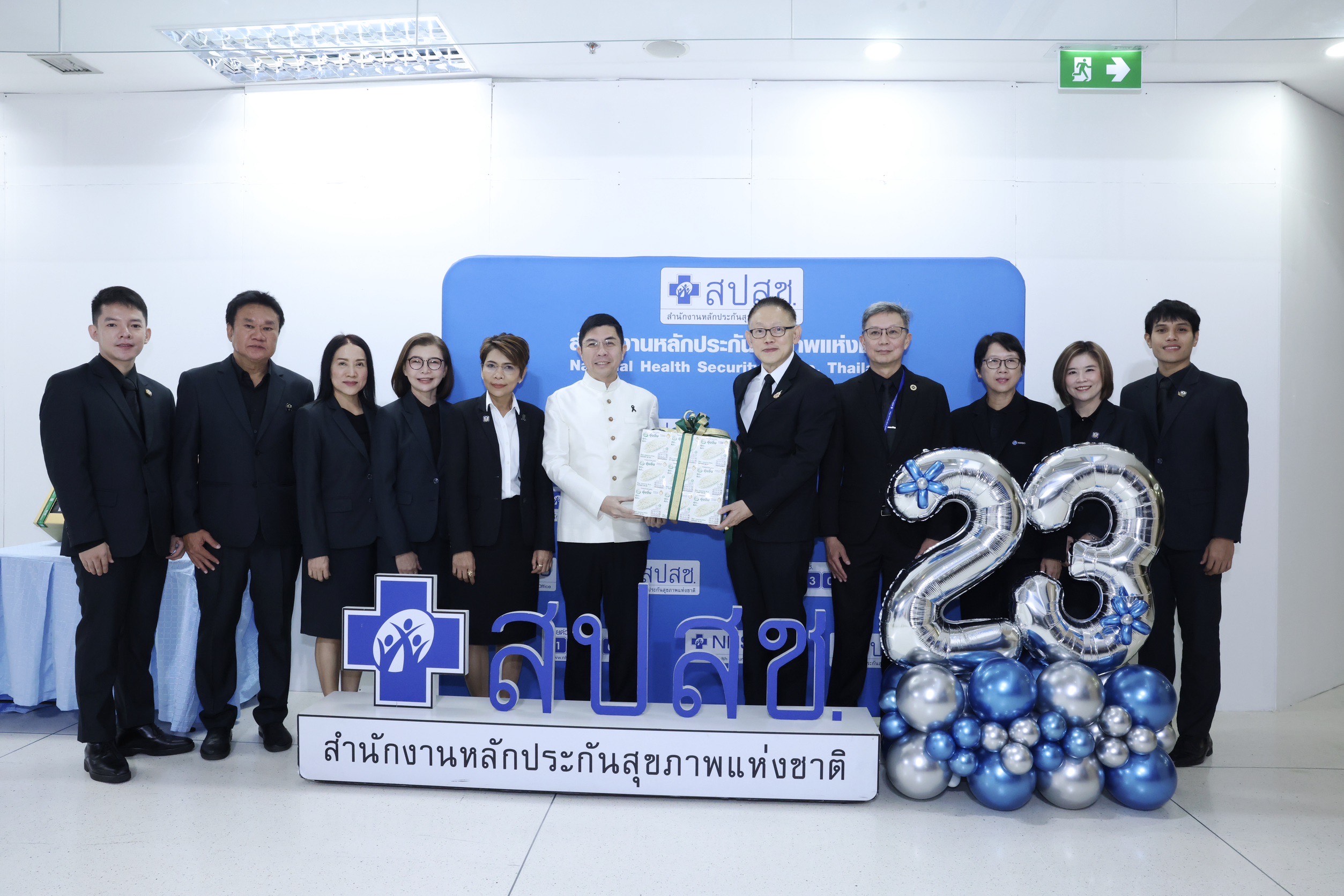 นายฉัตรชัย ศิริไล ผู้จัดการธนาคารเพื่อการเกษตรและสหกรณ์การเกษตร (ธ.ก.ส.) ร่วมแสดงความยินดีเนื่องในโอกาสวันสถาปนาสำนักงานหลักประกันสุขภาพแห่งชาติ ครบรอบ 23 ปี โดยมี นพ.จเด็จ ธรรมธัชอารี เลขาธิการสำนักงานหลักประกันสุขภาพแห่งชาติ (สปสช.) พร้อมด้วยคณะผู้บริหาร สปสช. ให้การต้อนรับและ