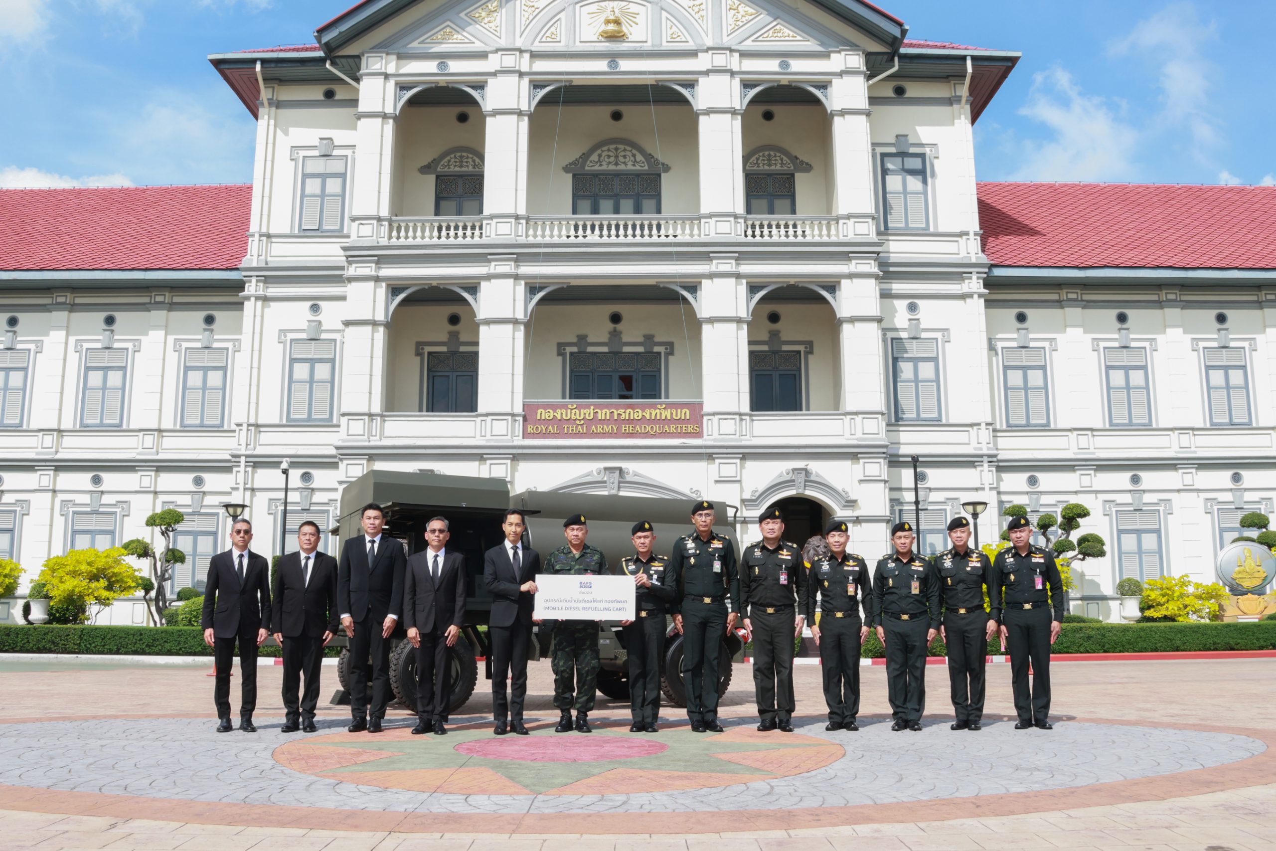 หม่อมหลวงณัฐสิทธิ์ ดิศกุล กรรมการผู้อำนวยการใหญ่ บริษัท บริการเชื้อเพลิงการบินกรุงเทพ จำกัด (มหาชน) หรือ บาฟส์ (BAFS) มอบอุปกรณ์เติมน้ำมันดีเซล (Mobile Diesel Refuelling Cart) ให้กับกองทัพบก สำหรับใช้ประโยชน์ในกิจการของกองทัพ โดย พลโท โดมหทัย ปั้นทองพันธุ์ รองเสนาธิการทหารบก ให้เกียรติเป็นสักขีพยานในการรับมอบ โดยมี พลตรี อภินันท์ ทิพย์เทพ เสนาธิการกรมพลาธิการทหารบก เป็นผู้รับมอบ เมื่อวันที่ 14 พฤศจิกายน 2568 ณ กองบัญชาการกองทัพบก ถนนราชดำเนินนอก