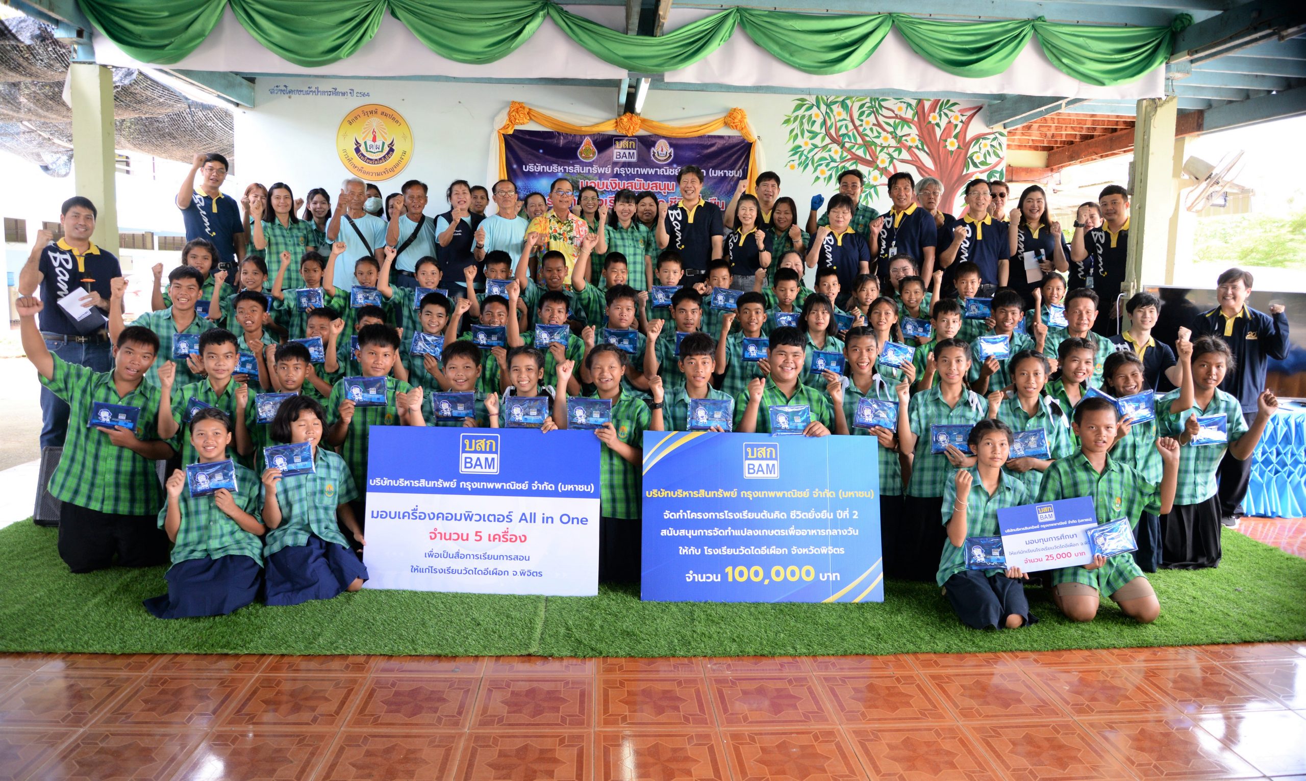 นายสันธิษณ์ วัฒนกุล รองประธานเจ้าหน้าที่บริหาร สายบริหารเงิน บัญชี และการลงทุน นางมณฑริกา ฉัตรมงคลพันธ์ ผู้อำนวยการฝ่ายพัฒนาสินทรัพย์ภาคเหนือตอนล่าง บริษัทบริหารสินทรัพย์ กรุงเทพพาณิชย์ จำกัด (มหาชน) หรือ BAM พร้อมด้วยผู้บริหารและพนักงาน มอบเงินจำนวน 100,000 บาท เพื่อจัดทำโครงการโรงเรียน ต้นคิด ชีวิตยั่งยืน ให้กับโรงเรียนวัดไดอีเผือก อำเภอทับคล้อ จังหวัดพิจิตร โดยมี นางสาวสุพัฒน์ตรา ปัญญายงค์ ผู้อำนวยการโรงเรียนเป็นผู้รับมอบ เพื่อให้นักเรียนได้จัดทำแปลงเกษตรอาหารกลางวันในพื้นที่โรงเรียน เป็นการส่งเสริมสุขภาพอนามัยที่ดี และเพิ่มคุณค่าโภชนาการควบคู่ไปกับแผนการเรียนการสอน พัฒนาทักษะด้านเกษตร เพิ่มความรู้และเข้าใจการทำการเกษตรอย่างถูกต้องมากขึ้น นอกจากนี้ BAM ได้มอบทุนการศึกษาจำนวน 25,000 บาท พร้อมคอมพิวเตอร์จำนวน 5 เครื่อง อุปกรณ์การเรียนและอุปกรณ์กีฬา ให้กับโรงเรียนวัดไดอีเผือก เพื่อใช้ในการเรียน การสอนต่อไป