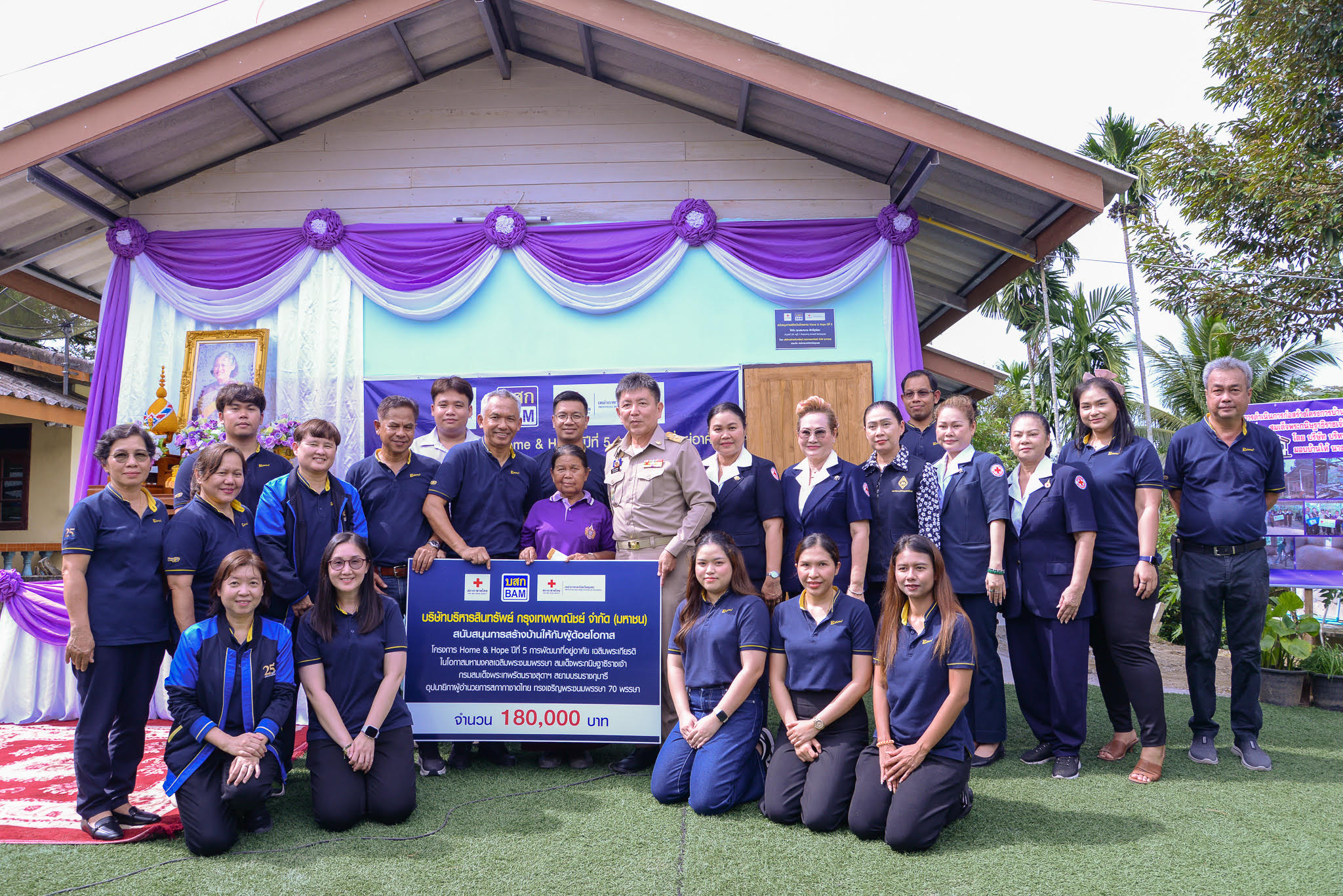 นายสุรศักดิ์ เมืองน้อย ผู้อำนวยการฝ่ายพัฒนาสินทรัพย์ภาคใต้ตอนบน นายวัชรินทร์ เครือแดงผู้จัดการสำนักงานสุราษฎร์ธานี พร้อมพนักงาน บริษัทบริหารสินทรัพย์ กรุงเทพพาณิชย์ จำกัด (มหาชน) หรือ BAM ร่วมกับ นายเธียรชัย ชูกิตติวิบูลย์ ผู้ว่าราชการจังหวัดชุมพร นางพณณกร ชูกิตติวิบูลย์ นายกเหล่ากาชาดจังหวัดชุมพร พร้อมองค์กรปกครองส่วนท้องถิ่น ส่งมอบบ้าน BAM โครงการ Home & Hope “การพัฒนาที่อยู่อาศัย เพื่อผู้ด้อยโอกาสในสังคม เฉลิมพระเกียรติ ในโอกาสมหามงคลเฉลิมพระชนมพรรษา สมเด็จพระกนิษฐาธิราชเจ้า กรมสมเด็จพระเทพรัตนราชสุดาฯ สยามบรมราชกุมารี อุปนายิกาผู้อำนวยการสภากาชาดไทย ทรงเจริญพระชนมพรรษา 70 พรรษา” ให้กับ นางสมหมาย ศักดิ์ภูเขียว ตำบลเขาทะลุ อำเภอสวี จังหวัดชุมพร