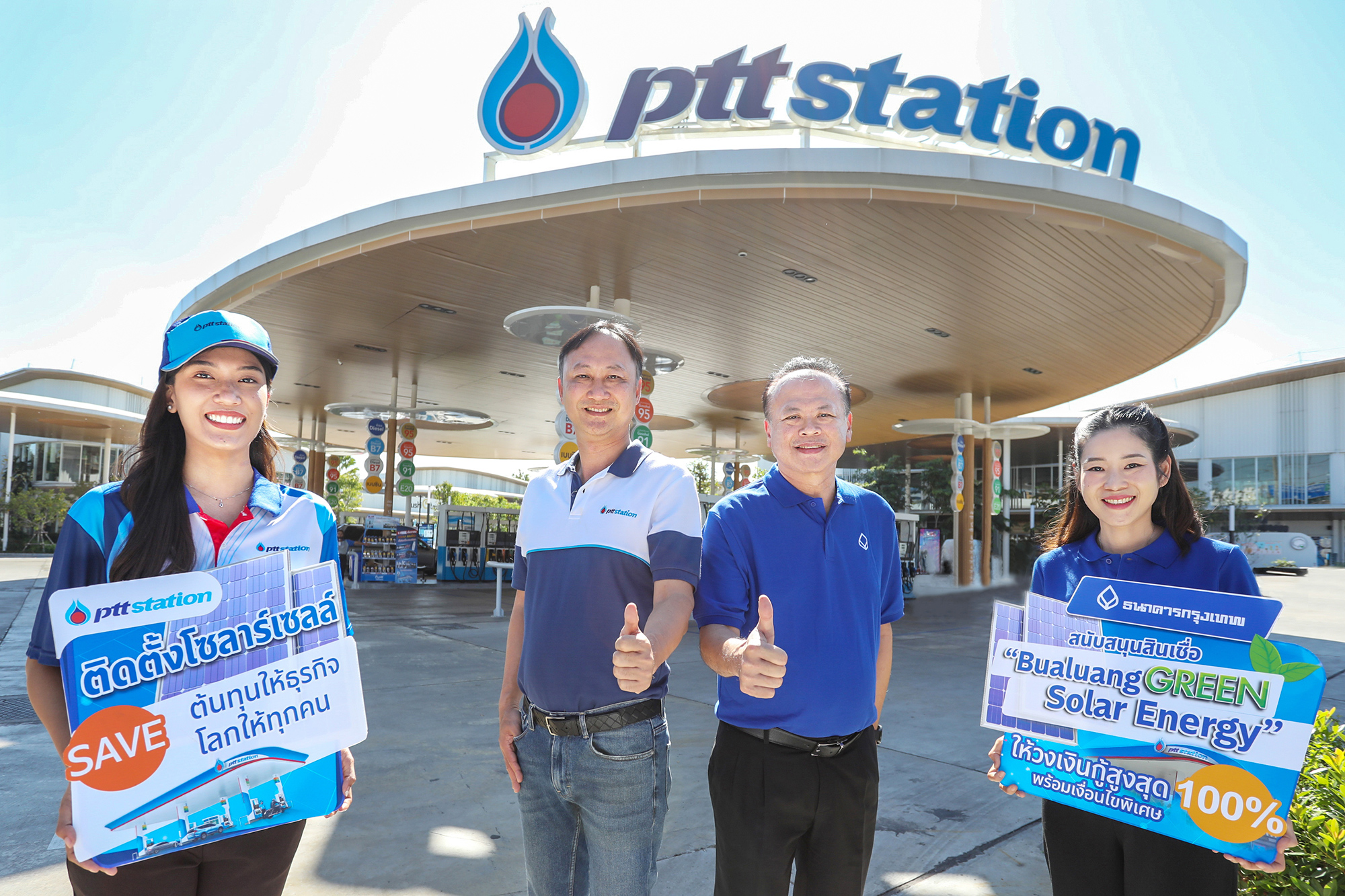 ครั้งนี้ธนาคารกรุงเทพ ร่วมกับ บริษัท ปตท. น้ำมันและการค้าปลีก จำกัด (มหาชน) หรือ โออาร์ (OR) ผลักดันสถานีบริการ พีทีที สเตชั่น ให้กลายเป็นสถานีบริการที่เป็นมิตรต่อสิ่งแวดล้อม ด้วยสินเชื่อ “Bualuang Green Solar Energy” สำหรับติดตั้งระบบผลิตไฟฟ้าจากพลังงานแสงอาทิตย์ (Solar Cell) สำหรับอาคารสถานีบริการน้ำมันเพื่อสนับสนุนผู้ประกอบการที่ต้องการลดต้นทุนด้านพลังงานไฟฟ้า และลดการปล่อยก๊าซเรือนกระจก สอดคล้องกับกระแสการเปลี่ยนผ่านไปสู่สังคมคาร์บอนต่ำที่กำลังเกิดขึ้นทั้งในและต่างประเทศ