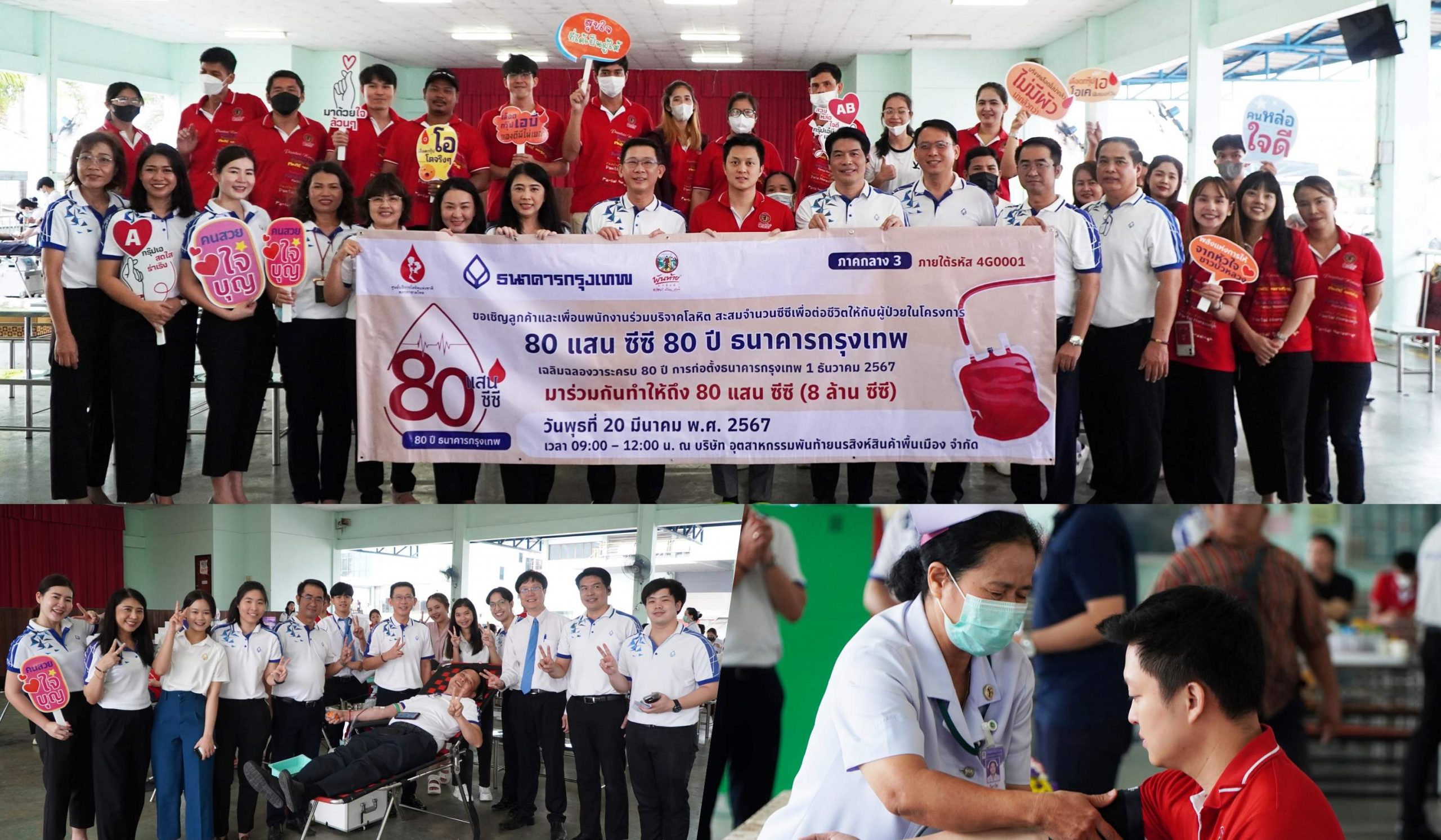 ธนาคารกรุงเทพ จำกัด (มหาชน) โดย นายนิธิรุจน์ สิริรุจิพัฒน์ เจ้าหน้าที่บริหารระดับ Vice President ผู้จัดการภาคกลาง 3 ร่วมกับองค์กรพันธมิตรชั้นนำ บริษัท อุตสาหกรรมพันท้ายนรสิงห์สินค้าพื้นเมือง จำกัด นำโดย นายเจมส์ พร้อมลาภ รองกรรมการผู้จัดการด้านการตลาดต่างประเทศ พร้อมคณะผู้บริหารและพนักงาน ร่วมกิจกรรมบริจาคโลหิตในโครงการ “80 แสนซีซี 80 ปีธนาคารกรุงเทพ” โดยมีปริมาณโลหิตที่บริจาคภายในวันเดียวรวมกว่า 30,800 ซีซี เพิ่มเติมให้กับคลังโลหิตสำรองของศูนย์บริการโลหิตแห่งชาติ สภากาชาดไทย