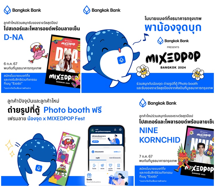 ห้ามพลาด! กิจกรรมสุดพิเศษมากมายที่บูธ “โมบายแบงก์กิ้งธนาคารกรุงเทพ” ภายในงาน “Bangkok Bank Presents MIXEDPOP BANGKOK 2024” ระหว่างวันที่ 6-7 กรกฎาคม 2567 เวลา 14.00 – 20.00 น. ที่ BITEC Live