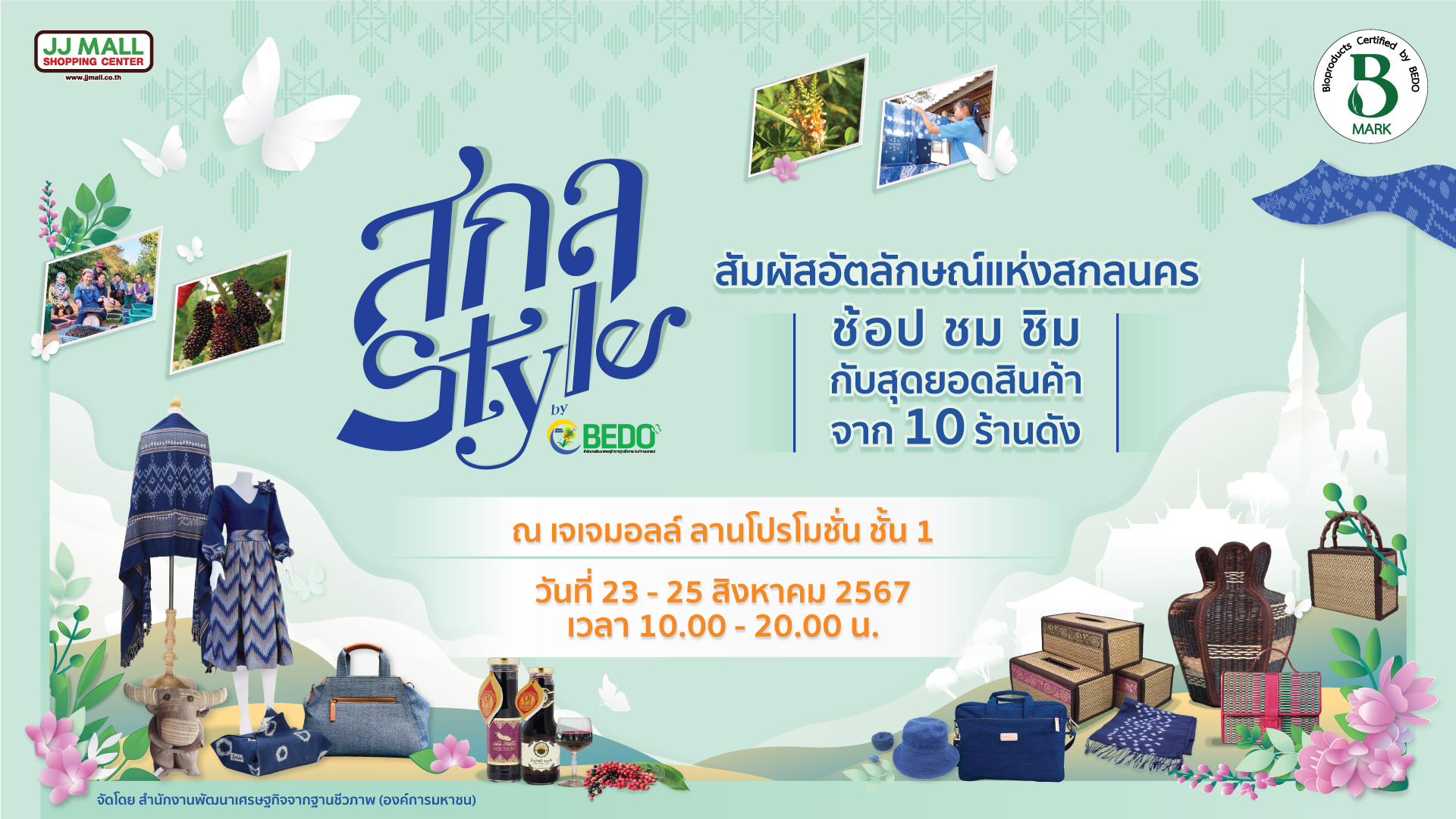 ทั้งนี้จึงต่อยอดไปสู่การจัดกิจกรรมส่งเสริมการสร้างโอกาสทางการตลาด การแสดงและจำหน่ายผลิตภัณฑ์และบริการจากความหลากหลายทางชีวภาพของชุมชน ภายใต้ชื่อ “สกล Style by BEDO” ระหว่างวันที่ 23-25 สิงหาคม 2567 ระยะเวลา 3 วัน ณ ลานกิจกรรม ชั้น G ศูนย์การค้า เจเจมอลล์ จตุจักร ภายในงานพบกับการจัดแสดงและจำหน่ายผลิตภัณฑ์และบริการจากความหลากหลากหลายทางชีวภาพ ของดีจังหวัดสกลนคร จากผู้ประกอบการชุมชน 10 ชุมชน ได้แก่