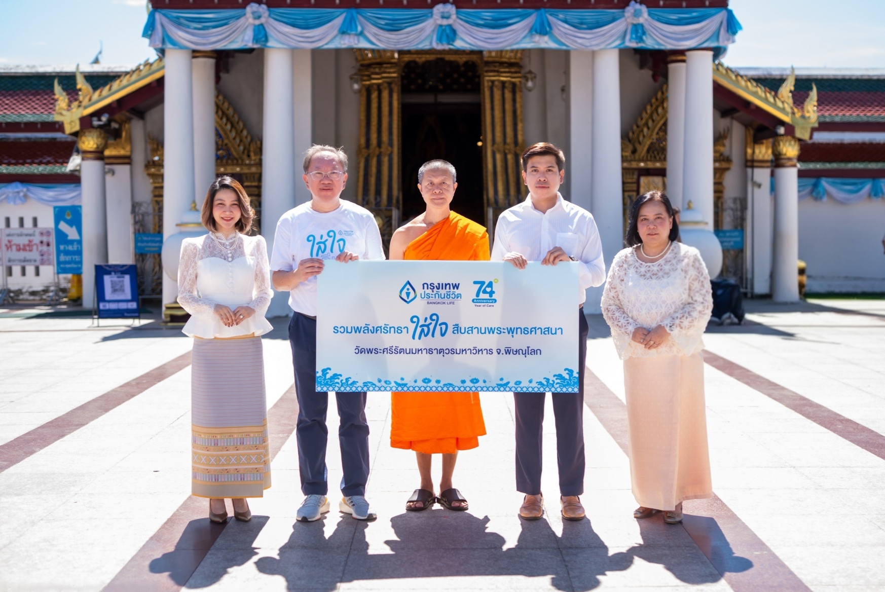 กรุงเทพประกันชีวิต จัดกิจกรรม “รวมพลังศรัทธา ใส่ใจพระพุทธศาสนา” เนื่องในโอกาสครบรอบ 74 ปี สานต่อพันธกิจขององค์กรในเรื่องการใส่ใจชุมชนและสังคม ภายใต้แนวคิด “ใส่ใจพุทธศาสนา เพื่อความสุขที่ยั่งยืน” ควบคู่กับความเข้มแข็งของศาสนา ชุมชน และสังคม โดยได้มอบสิ่งอำนวยความสะดวกในการจัดกิจกรรมศาสนพิธี งานสาธารณะประโยชน์ พร้อมจัดพิธีทำบุญถวายภัตตาหารเพลแด่พระสงฆ์ เพื่อสืบสานพระพุทธศาสนา และเสริมสร้างความเป็นสิริมงคล โดยมีผู้บริหาร พันธมิตร ทีมตัวแทน และลูกค้า เข้าร่วมงาน นอกจากนี้ยังได้จัดซุ้มอาหารและเครื่องดื่มโรงทาน สำหรับประชาชนทั่วไปในพื้นที่ และนักท่องเที่ยว จำนวน 600 คน และยังมอบต้นไม้เพื่อเพิ่มความร่มรื่น ณ วัดพระศรีรัตนมหาธาตุวรมหาวิหาร จังหวัดพิษณุโลก