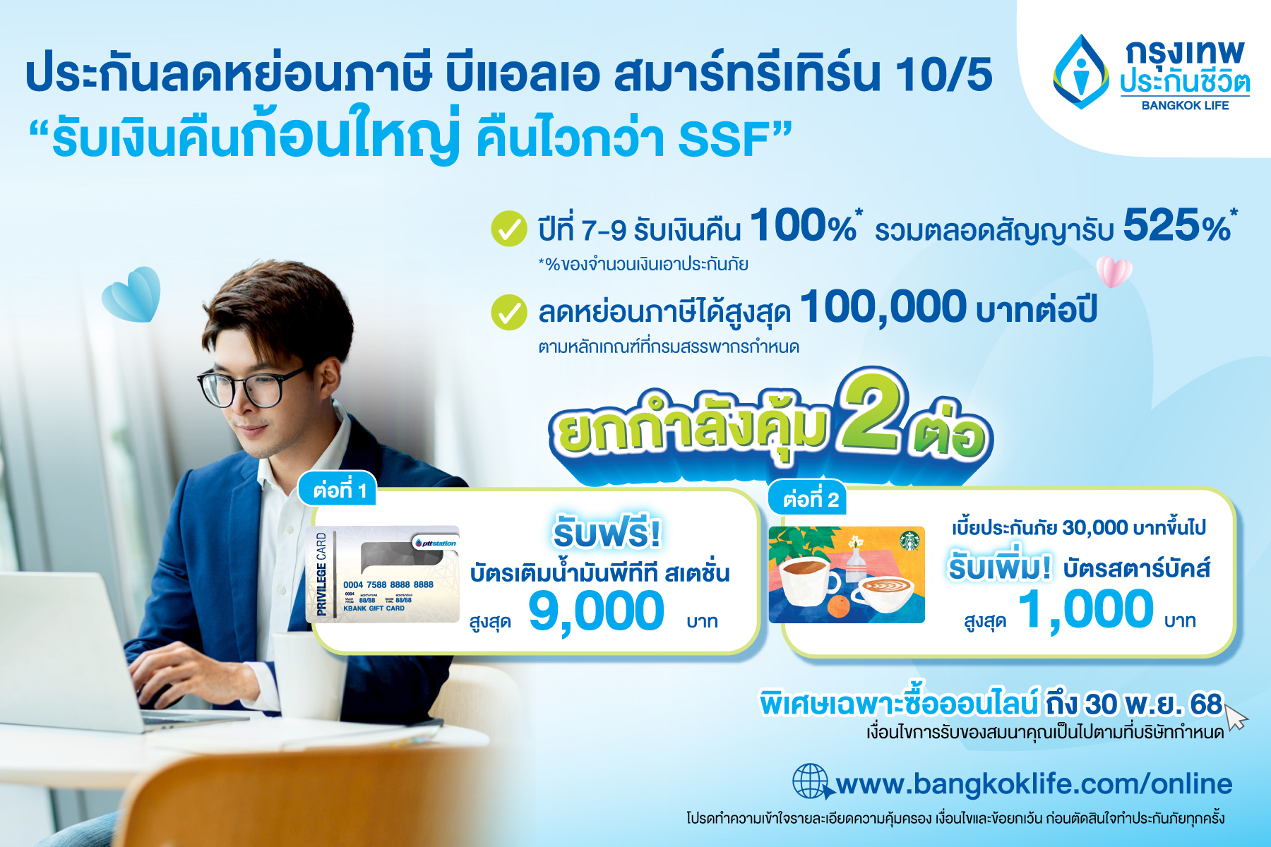 กรุงเทพประกันชีวิต ใส่ใจทุกขั้นตอนซื้อประกันออนไลน์ ตอบรับพฤติกรรมของผู้บริโภคยุคดิจิทัลที่ต้องการความสะดวก รวดเร็ว ใช้งานง่าย สามารถดูรายละเอียดความคุ้มครอง กดคำนวณเบี้ย เพื่อเปรียบเทียบผลประโยชน์ด้วยตัวเองได้ที่นี่  https://bla.bangkoklife.com/onlinepr  ทั้งยังใส่ใจความปลอดภัย โดยได้รับการรับรองระบบ ISO/IEC 27001:2022 ระบบบริหารจัดการความมั่นคงปลอดภัยข้อมูลสารสนเทศ พร้อมมอบประสบการณ์ดีที่สุดในการเลือกซื้อประกันชีวิตผ่านช่องทางออนไลน์ให้กับคุณ