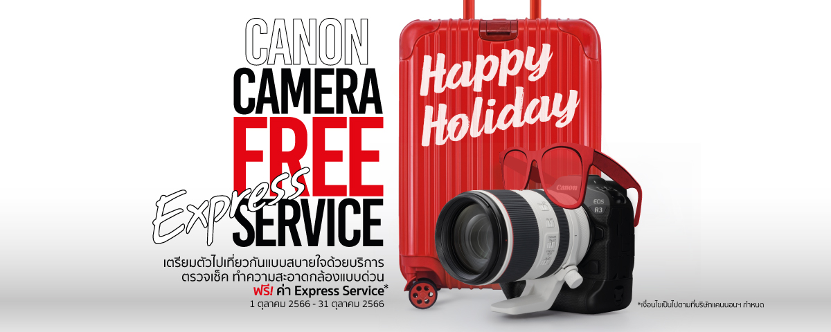 แคนนอน รู้ใจลูกค้าที่เตรียมพกกล้องคู่ใจไปออกทริปช่วงหยุดยาวในเดือน ต.ค 66 จัดแคมเปญ Happy Holiday มอบข้อเสนอสุดพิเศษ ฟรี! บริการตรวจเช็คและทำความสะอาดภายนอกแบบเอ็กซ์เพรส โดยสามารถนำผลิตภัณฑ์กล้องหรือเลนส์แคนนอนประกันศูนย์เข้ามารับบริการพิเศษตั้งแต่วันที่ 1 – 31 ตุลาคม 2566 ณ ศูนย์บริการแคนนอน สำนักงานใหญ่ (อาคารสารทรสแควร์ ออฟฟิศ ทาวเวอร์ กรุงเทพฯ) สิทธิประโยชน์สุดคุ้มค่า มีดังนี้