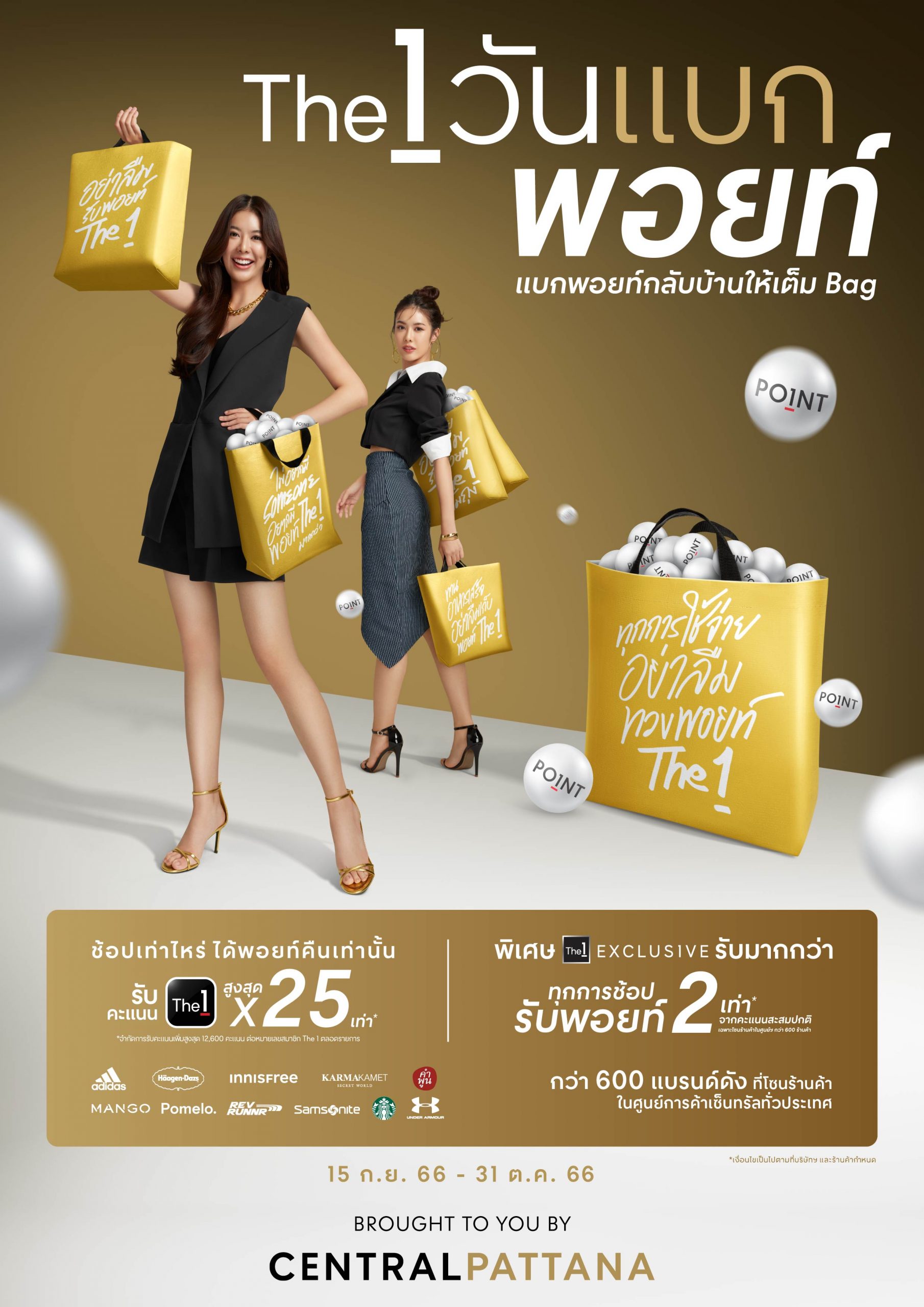 เซ็นทรัลพัฒนา ร่วมกับ เดอะวัน มอบสิทธิพิเศษให้สมาชิก The 1 จัดเต็มต่อเนื่อง ในแคมเปญ “The 1 วันแบกพอยท์” ชวนทุกคนแบกพอยท์ The 1 กลับบ้านให้เต็มกระเป๋า ช้อปเท่าไหร่ ได้พอยท์คืนเท่านั้น สูงสุด 25 เท่า* แค่ช้อปแล้วอย่าลืมบอกเบอร์ทวงพอยท์ ที่ 600 ร้านค้าร่วมรายการ อาทิ Starbucks, adidas, Pomelo, Mango, Hoka, INNISFREE, iStudio by copperwired, Jaymart, Spaghetti Factory ฯลฯ ที่โซนร้านค้าในศูนย์การค้าเซ็นทรัลทั่วประเทศ ตั้งแต่วันนี้ – 31 ต.ค. 2566