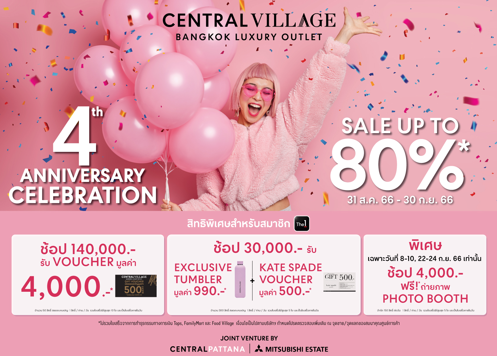เซ็นทรัลพัฒนา จัดใหญ่ฉลองครบรอบ 4 ปี “เซ็นทรัล วิลเลจ” เปิดกลยุทธ์สู่ความสำเร็จ ด้วย Strategic Magnet เติมเต็มความสุขในการใช้ชีวิตให้ลูกค้าที่มาใช้บริการ ขนทัพแบรนด์เนม กว่า 300 แบรนด์ชั้นนำ จัดใหญ่ฉลองในแคมเปญ Magical Candy Celebration ผนึกพาทเนอร์และแบรนด์ชั้นนำอัดโปรแรง อาทิ ลดสูงสุด 80% พิเศษ Top Spender ช้อปครบ 140,000 บาท รับทันที Gift voucher Central Village มูลค่า 4,000 บาท ตั้งแต่วันนี้ถึง 30 ก.ย. 2566 วางเป้าหมาย Luxury Lifestyle Destination ใหม่ที่มากกว่าลักชูรี่เอาท์เล็ต ผ่านแคมเปญ Magical Candy Celebration คาด ช่วยเพิ่มทราฟฟิคในช่วงฉลองครบรอบเติบโตเพิ่มขึ้น 25-30%