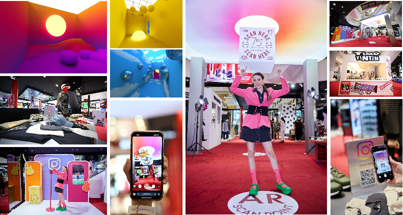 โซน “AR Stunt” กิจกรรมถ่ายรูป AR สุดล้ำ พบกับเหล่าคาแรกเตอร์จากคอลเลกชัน “CENTRAL 75th Anniversary” อย่างพี่เสือ ป้าตุ่นปากเป็ด และน้องหมาอาคิตะ ที่จะออกมาโลดแล่นทักทายทุกคนใน รูปแบบ AR สมจริง