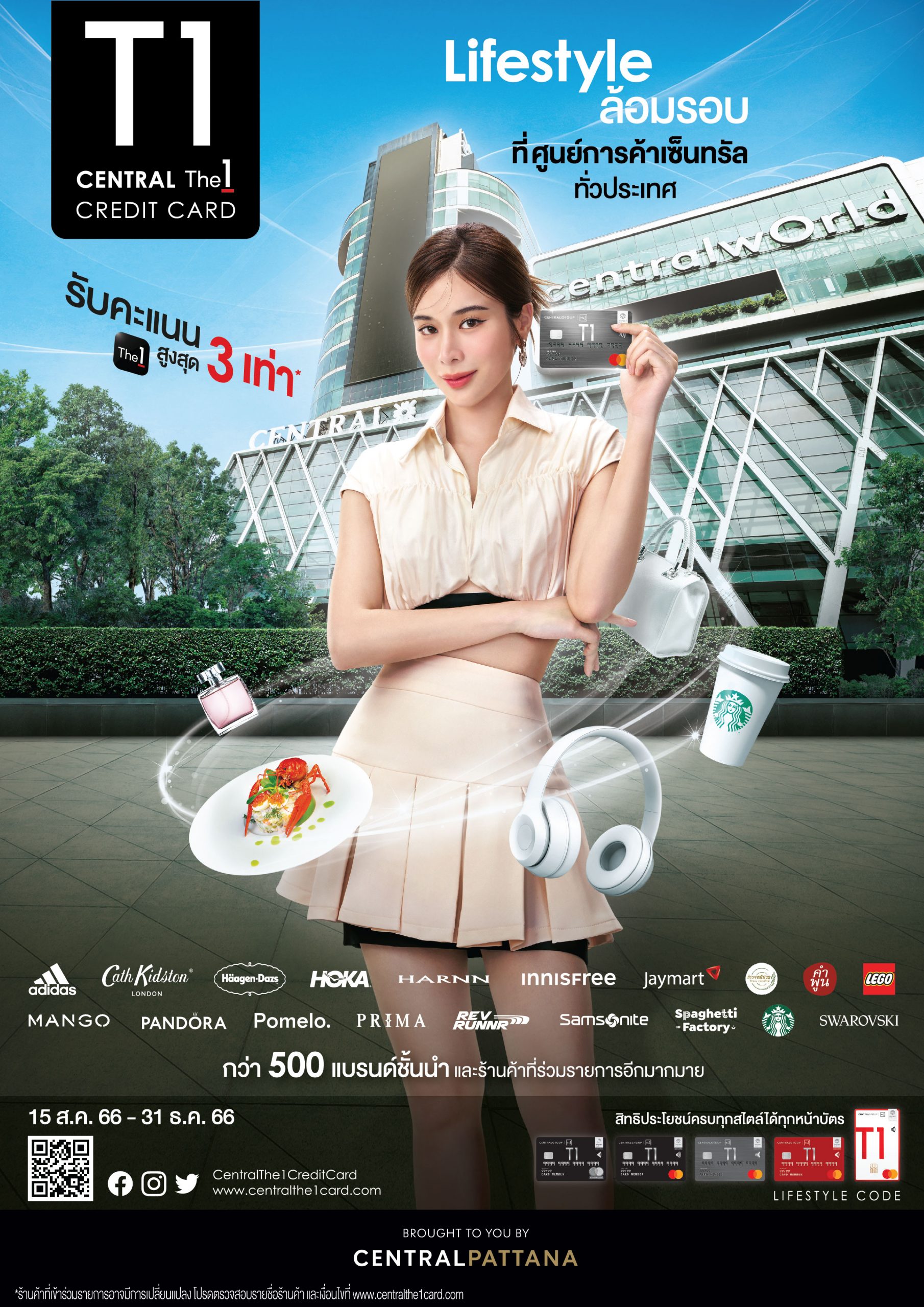 เซ็นทรัลพัฒนา ผนึกกำลัง บัตรเครดิตเซ็นทรัล เดอะวัน สร้างปรากฏการณ์ Privilege Phenomenon แห่งวงการศูนย์การค้า ครั้งแรก! เมื่อช้อปผ่านบัตรเครดิตเซ็นทรัล เดอะวัน รับทันทีคะแนนเดอะวันสูงสุด 3 เท่า พร้อมขยายความสุขตอบโจทย์ทุกไลฟ์สไตล์การช้อปได้ทุกวัน กับร้านค้าชั้นนำที่ร่วมรายการกว่า 500 แบรนด์ อาทิ Starbucks, Adidas, Pomelo, Mango, Hoka, Pandora, Innisfree, iStudio by copperwired, Jaymart, Spaghetti Factory เริ่มวันนี้ – 31 ธ.ค. 2566 ที่ศูนย์การค้าเซ็นทรัลทั่วประเทศ