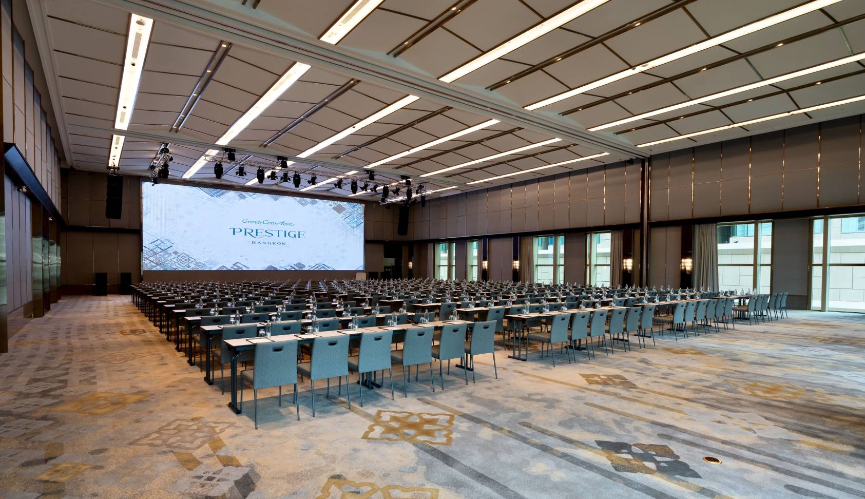 ห้องจัดเลี้ยงที่กว้างขวาง ขนาดตั้งแต่ 90 ตารางเมตรจนถึง 437 ตารางเมตร สามารถรองรับแขกได้กว่า 600 คน พร้อมจอ LED ขนาดใหญ่ และระบบเสียงที่ล้ำสมัยพร้อมเทคโนโลยีที่ครบครัน ออกแบบมาเพื่อให้สามารถรองรับการจัดงานได้ทุกรูปแบบ ไม่ว่าจะเป็นงานเลี้ยงขนาดใหญ่หรืองานประชุมสัมมนาทั้งขนาดใหญ่และเล็ก โดดเด่นด้วยพื้นที่หน้าห้องที่โปร่งกว้างขวาง รวมถึงโซนจัดเลี้ยงท่ามกลางบรรยากาศของสวนสวยและกลาสเฮาส์ ที่มอบทั้งความเป็นส่วนตัวและบรรยากาศอันมีเอกลักษณ์ไม่เหมือนใคร