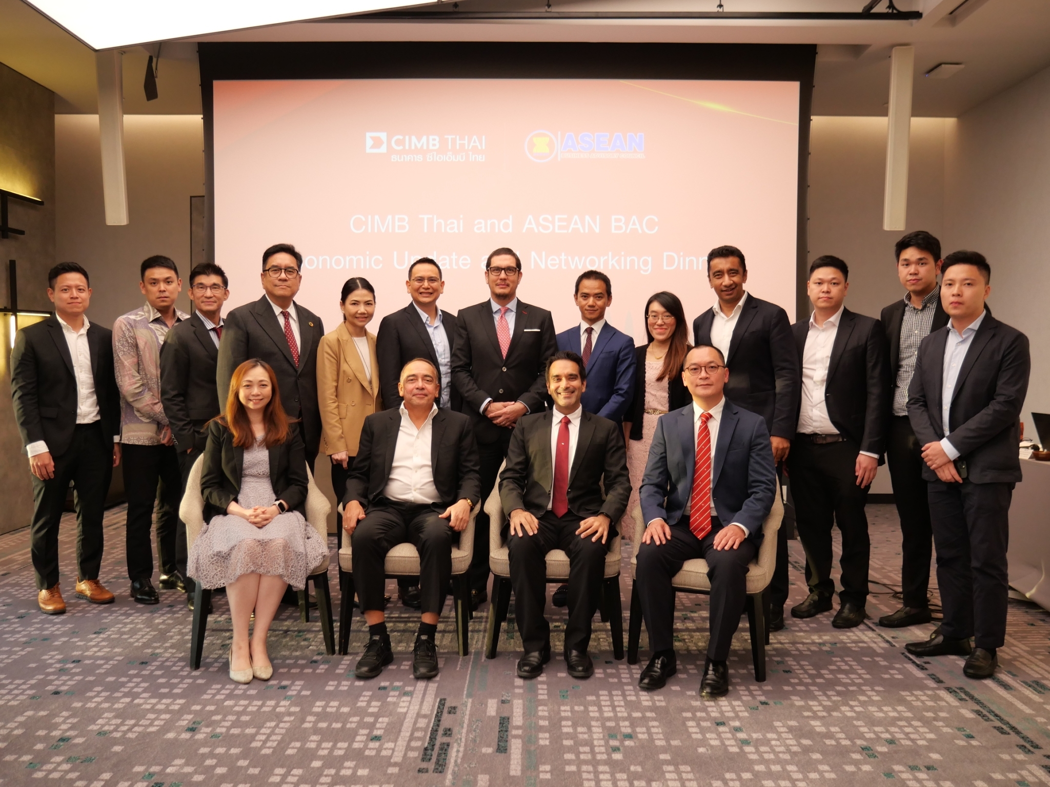 ธนาคาร ซีไอเอ็มบี ไทย และ สภาที่ปรึกษาธุรกิจอาเซียนมาเลเซีย (ASEAN–BAC มาเลเซีย) จัดงาน “CIMB Thai and ASEAN-BAC Malaysia: Economic Update and Networking Dinner” โดยมีผู้เข้าร่วมประชุมกว่า 20 ท่าน ดร.อมรเทพ จาวะลา ผู้ช่วยกรรมการผู้จัดการใหญ่ ผู้บริหารสำนักวิจัย ธนาคาร ซีไอเอ็มบี ไทย นำเสนอข้อมูลเกี่ยวกับภาพรวมเศรษฐกิจของประเทศไทย ครอบคลุมเรื่องโอกาส ความเสี่ยง แนวโน้มเศรษฐกิจในปี 2567 และความท้าทายในด้านต่าง ๆ ให้แก่ Tan Sri Nazir Razak ประธาน ASEAN-BAC มาเลเซีย และทีมงาน รวมถึงตัวแทนสมาชิก ASEAN–BAC Malaysia Circle หรือ ABMC ผู้เข้าร่วมงานจาก ASEAN–BAC มาเลเซีย ABMC และผู้บริหารธนาคาร ซีไอเอ็มบี ไทย อาทิ ตัน คีท จิน รองกรรมการผู้จัดการใหญ่ ธุรกิจรายย่อย เพา จาตกานนท์ รองกรรมการผู้จัดการใหญ่ ธุรกิจบริหารเงิน วุธว์ ธนิตติราภรณ์ รองกรรมการผู้จัดการใหญ่ บรรษัทธุรกิจและธุรกรรมการเงิน ปนิดา ตั้งศรีวงษ์ รองกรรมการผู้จัดการใหญ่ สถาบันการเงินประเทศไทยและ CLMV และ กนต์ธีร์ ประเสริฐวงศ์ รองกรรมการผู้จัดการใหญ่ วาณิชธนกิจ ได้มีการแลกเปลี่ยนข้อมูลและมุมมองการค้าและเศรษฐกิจในอาเซียน โดยเฉพาะเศรษฐกิจระหว่างไทยและมาเลเซีย ทั้งในด้านการลงทุน การนำเข้า-ส่งออก และการผลักดันเศรษฐกิจในอาเซียน ตลอดจนแนวทางสร้างความร่วมมือระหว่างสองประเทศ