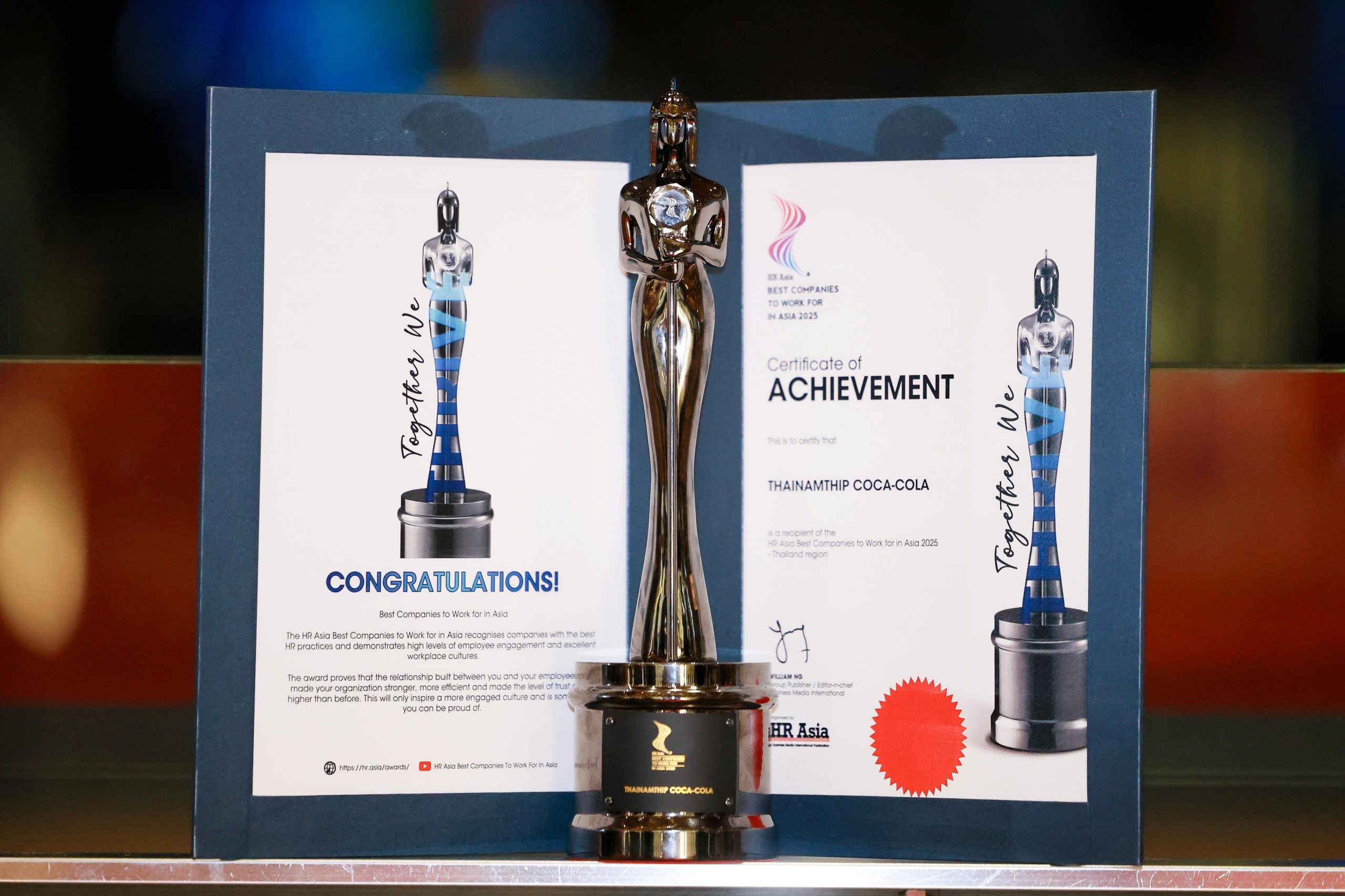 ไทยน้ำทิพย์ โคคา-โคล่า โชว์ฟอร์มความสำเร็จด้านองค์กรนายจ้างดีเด่นอีกครั้ง รับรางวัล HR Asia Best Companies to Work for in Asia 2025 หนึ่งในองค์กรที่น่าทำงานที่สุดในระดับเอเชีย ต่อเนื่องเป็นปีที่ 2 โดยผ่านการคัดเลือกจากกว่า 300 บริษัทในประเทศไทย สะท้อนการเป็นองค์กรที่ได้รับการยอมรับจากพนักงานในด้านการบริหารทรัพยากรบุคคลยอดเยี่ยม สร้างความผูกพันและวัฒนธรรมองค์กรที่แข็งแกร่ง ตอกย้ำความสำเร็จของไทยน้ำทิพย์ โคคา-โคล่า ด้านการเป็นผู้นำในอุตสาหกรรมเครื่องดื่มของไทย ที่มุ่งสร้างการเปลี่ยนแปลงเชิงบวกแก่พนักงาน รวมถึงลูกค้า ชุมชน สังคม และสิ่งแวดล้อม