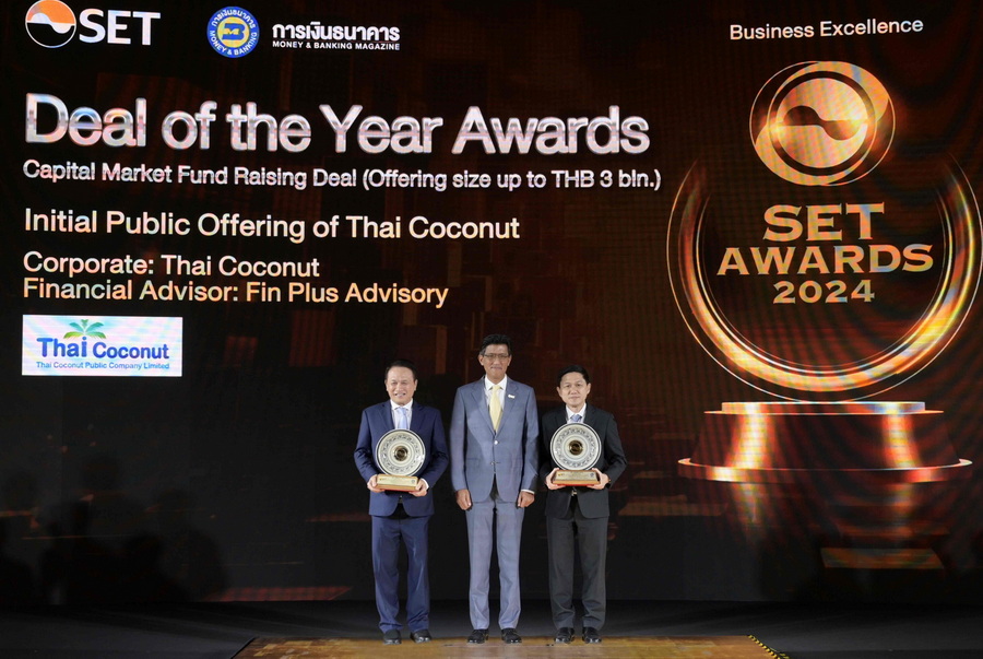 นายเสกสรรค์ ธโนปจัย ประธานเจ้าหน้าที่บริหาร บริษัท ฟิน พลัส แอดไวเซอรี่ จำกัด ในฐานะที่ปรึกษาทางการเงิน บริษัท ไทย โคโคนัท จำกัด (มหาชน) หรือ COCOCO กล่าวว่า คว้ารางวัลกลุ่ม Business Excellence สาขา Deal of the Year Awards และ Outstanding Deal Awards ในงาน SET Awards 2024 ด้านการระดมทุน มูลค่าการเสนอขายไม่เกิน 3,000 ล้านบาท จากการเสนอขายหุ้นต่อประชาชนเป็นครั้งแรก (IPO) ของ บมจ. ไทย โคโคนัท ถือเป็นรางวัลแห่งความสำเร็จจากธุรกรรมทางการเงินด้านการนำหุ้นIPO เข้าจดทะเบียนในตลาดหลักทรัพย์แห่งประเทศไทย ซึ่ง COCOCO เข้าจดทะเบียนและเริ่มซื้อขายในตลาดหลักทรัพย์ฯ ในกลุ่มเกษตรและอุตสาหกรรมอาหาร หมวดอาหารและเครื่องดื่ม โดยใช้ชื่อย่อในการซื้อขายหลักทรัพย์ว่า “COCOCO” ในวันที่ 14 กันยายน 2566 ที่ผ่านมา