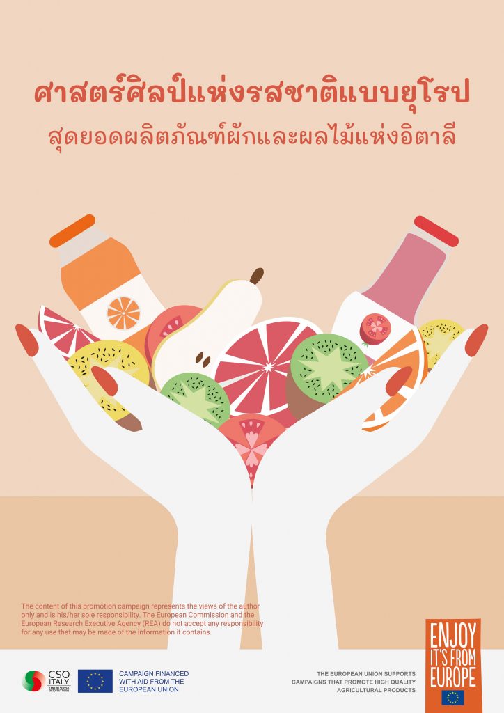 โครงการ ‘ศาสตร์ศิลป์แห่งรสชาติแบบยุโรป สุดยอดผลิตภัณฑ์ผักและผลไม้แห่งอิตาลี’ (‘THE EUROPEAN ART OF TASTE: ITALIAN FRUIT & VEG MASTERPIECES’) เปิดตัวขึ้นในประเทศไทยเมื่อเร็วๆนี้ โดยเป็นส่วนหนึ่งของโครงการ 3 ปีที่ทาง CSO Italy ผลักดันและได้รับการสนับสนุนทางการเงินจากสหภาพยุโรป ร่วมกับบริษัทธุรกิจผักและผลไม้ชั้นนำขนาดใหญ่ของอิตาลี 7 บริษัท ได้แก่ Apofruit, Cico-Mazzoni, Conserve Italia, Lagnasco, Oranfrizer, Origine และ RK Growers