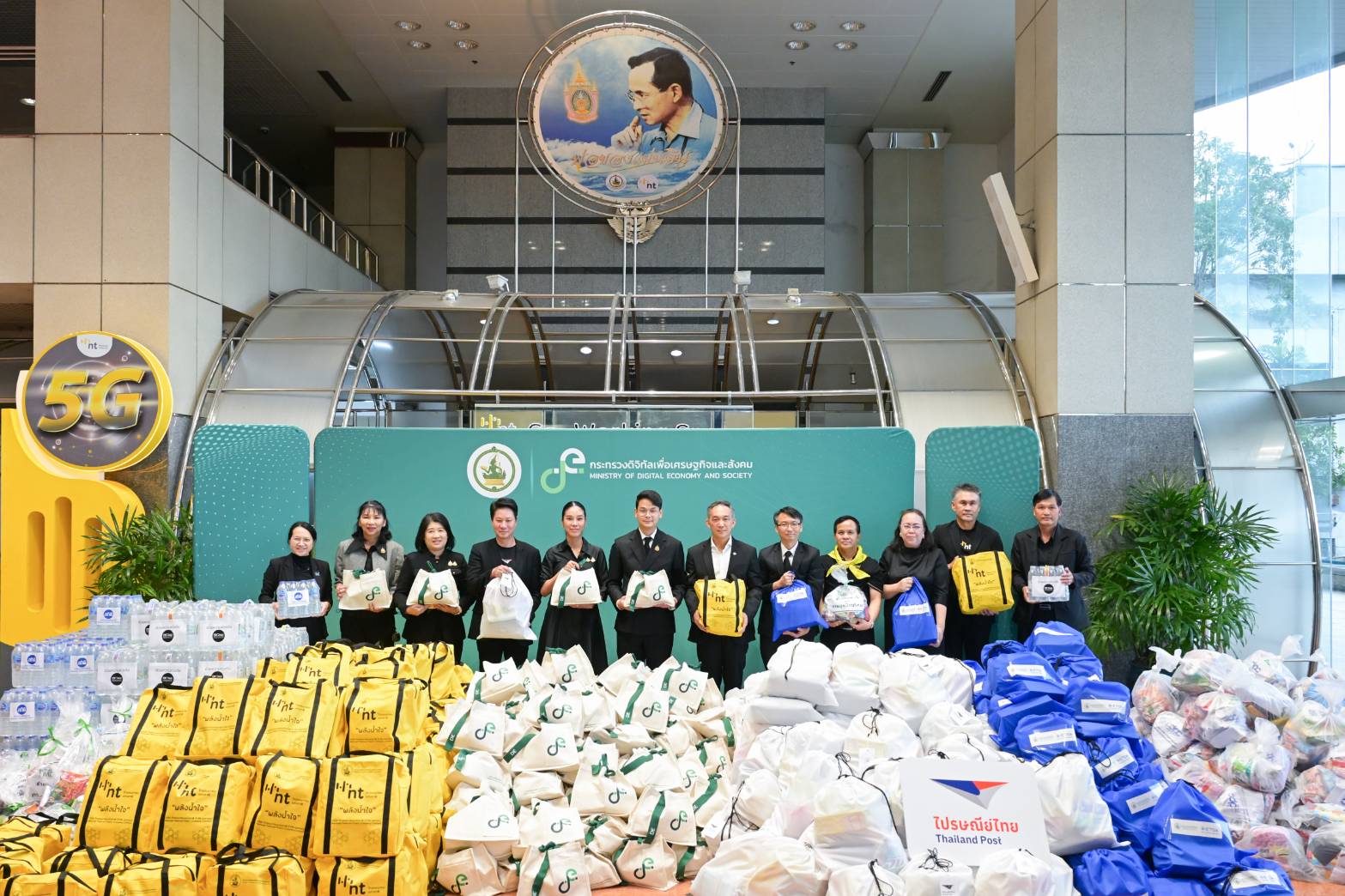 กระทรวงดิจิทัลเพื่อเศรษฐกิจและสังคม (ดีอี) และหน่วยงานในสังกัด รวมถึงบริษัท ไปรษณีย์ไทย จำกัด ร่วมปล่อยขบวนรถขนส่งถุงยังชีพและสิ่งของจำเป็น เพื่อให้ความช่วยเหลือเร่งด่วนแก่ประชาชนในพื้นที่ประสบอุทกภัยภาคใต้ 7 จังหวัด ได้แก่ สุราษฎร์ธานี นครศรีธรรมราช ตรัง พัทลุง สตูล สงขลา และปัตตานี รวม 66 อำเภอ 316 ตำบล 2,258 หมู่บ้าน ซึ่งมีประชาชนได้รับผลกระทบกว่า 239,699 ครัวเรือน ผ่านโครงการ “ส่งต่อพลังน้ำใจ ช่วยเหลือผู้ประสบอุทกภัยภาคใต้” โดยเฉพาะในอำเภอหาดใหญ่ จังหวัดสงขลาที่ได้รับผลกระทบจากฝนตกหนักและน้ำท่วมหลายจุด ทำให้ประชาชนจำนวนมากประสบความเดือดร้อนและต้องการความช่วยเหลืออย่างเร่งด่วน