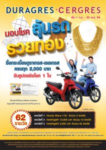 บริษัท สหโมเสคอุตสาหกรรม จำกัด (มหาชน) หรือ UMI GROUP  กลุ่มบริษัทผู้ผลิตและจัดจำหน่ายกระเบื้องชั้นนำของประเทศไทยภายใต้แบรนด์ดูราเกรสและเซอเกรส จัดแคมเปญเพื่อคืนกำไรให้ลูกค้า “ลุ้นรถรวยทอง” เมื่อซื้อกระเบื้อง ดูราเกรสหรือพอร์ซเลนเซอเกรส ณ ร้านค้าที่ร่วมรายการทั่วประเทศ ครบทุกๆ 2,000 บาท รับคูปองชิงโชคทันที 1 ใบ ลุ้นรับ