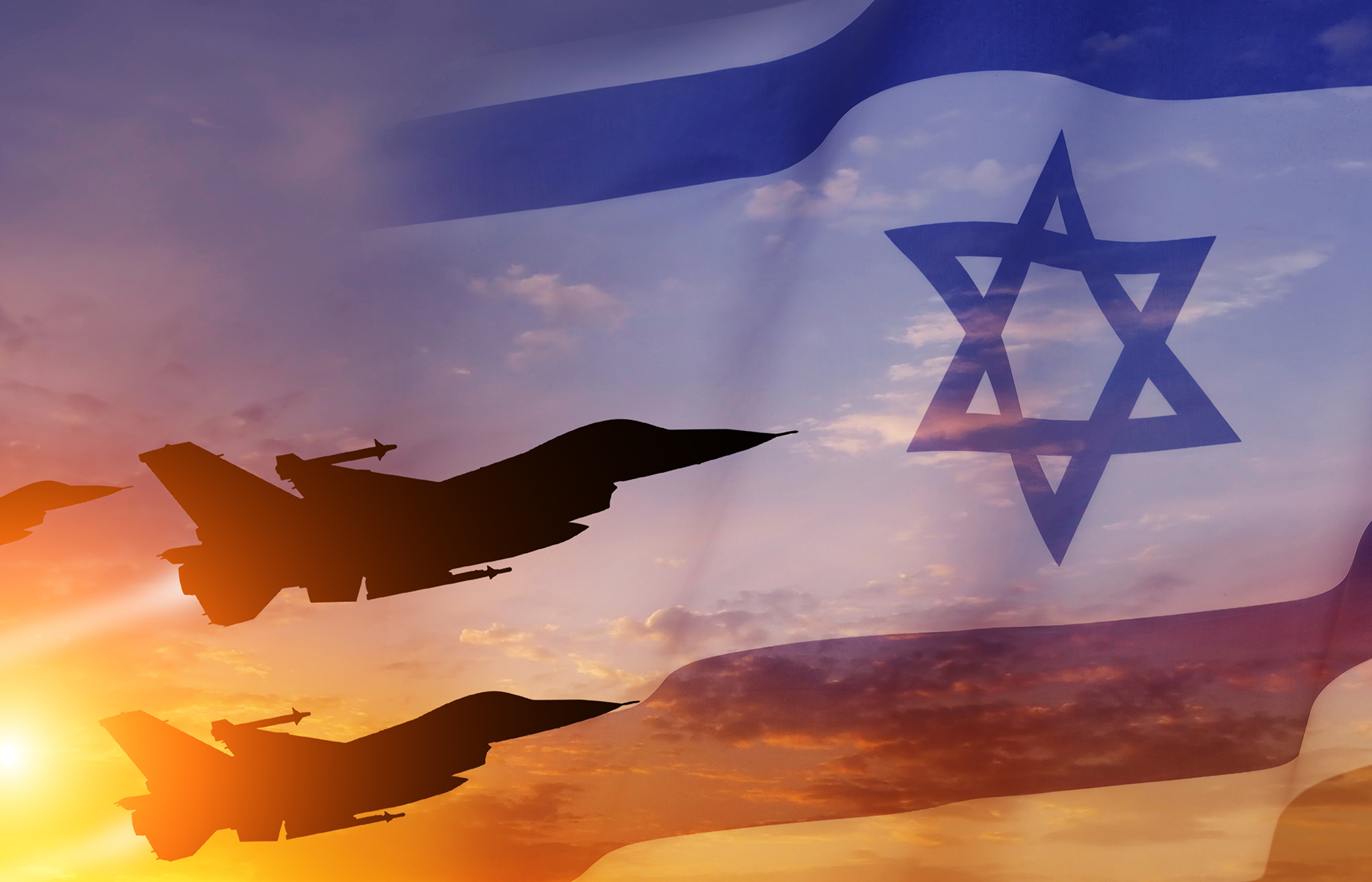 Group of aircraft fighter jet airplane. Israel flag. Independence day. 3d illustration