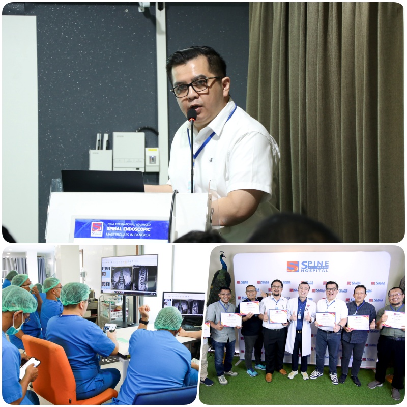 โรงพยาบาลเอส สไปน์ แอนด์ เนิร์ฟ จัดงานประชุมวิชาการด้านกระดูกสันหลัง ประจำปี 2024 International Advanced Spinal Endoscopic Masterclass in Bangkok ในหัวข้อ PSLD, PSCD, PSTD, ENDO ACDF, ENDO TLIF, PAIN INTERVENTION และ “Live Surgery Workshop” โดยทีมศัลยแพทย์เฉพาะทางด้านกระดูกสันหลัง และวิทยากรผู้ทรงคุณวุฒิจากต่างประเทศ ร่วมบรรยายและฝึกปฏิบัติด้านเทคนิคการส่องกล้อง Endoscopic โดยการจัดงานในครั้งนี้ เพื่อส่งเสริมความก้าวหน้าและพัฒนาเทคนิคด้านการส่องกล้องรักษาโรคกระดูกสันหลังแบบแผลเล็ก (Advanced Spinal Endoscopic) ให้เป็นที่แพร่หลาย และมีประสิทธิภาพมากยิ่งขึ้น โดยได้รับเกียรติจาก นพ.ดิตถพงษ์ บุญอำพล ผู้อำนวยการ รพ.เอส สไปน์ แอนด์ เนิร์ฟ ให้เกียรติเป็นประธานเปิดงาน