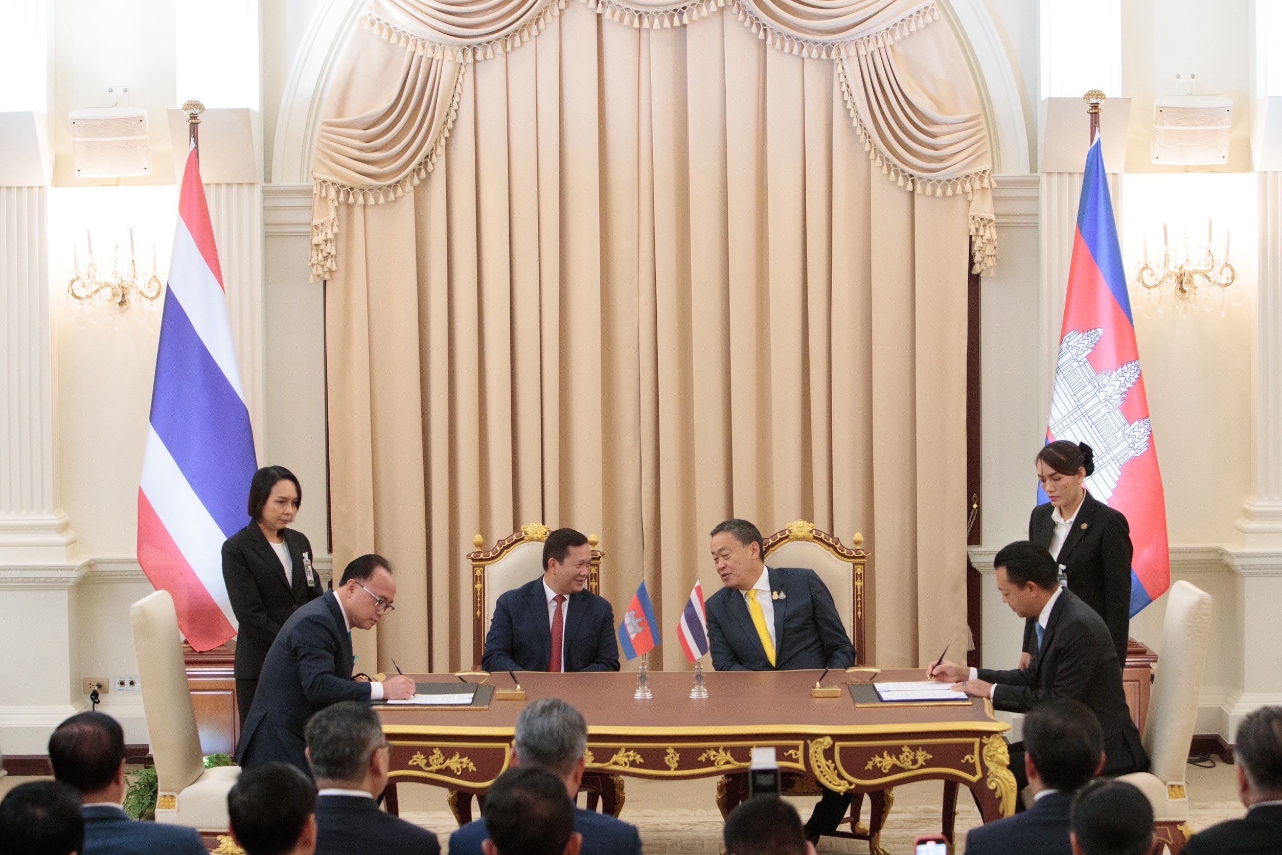 นายเศรษฐา ทวีสิน นายกรัฐมนตรีและรัฐมนตรีว่าการกระทรวงการคลัง และสมเด็จมหาบวรธิบดี ฮุน มาแนต นายกรัฐมนตรีราชอาณาจักรกัมพูชา เป็นสักขีพยานในพิธีลงนามในบันทึกความเข้าใจ (MOU) ระหว่างธนาคารเพื่อการส่งออกและนำเข้าแห่งประเทศไทย (EXIM BANK) และหอการค้ากัมพูชา (The Cambodia Chamber of Commerce : CCC) โดยมี ดร.รักษ์ วรกิจโภคาทร กรรมการผู้จัดการ EXIM BANK และเนก โอคนา คิท เม้ง (Neak Oknha. Kith Meng) ประธานหอการค้ากัมพูชา เป็นผู้ลงนาม โดยทั้งสองหน่วยงานจะแลกเปลี่ยนข้อมูลและบริการด้านข้อมูลข่าวสารที่เกี่ยวข้องกับเศรษฐกิจ การค้าการลงทุน และการพัฒนาอุตสาหกรรม ตลอดจนกิจกรรมอื่น ๆ ที่เป็นประโยชน์ต่อธุรกิจผ่านช่องทางและเครือข่ายต่าง ๆ เพื่อส่งเสริมการค้าการลงทุนไทย-กัมพูชาและขับเคลื่อนการพัฒนาอย่างยั่งยืนในอนุภูมิภาคลุ่มแม่น้ำโขง ณ ทำเนียบรัฐบาล เมื่อวันที่ 7 กุมภาพันธ์ 2567